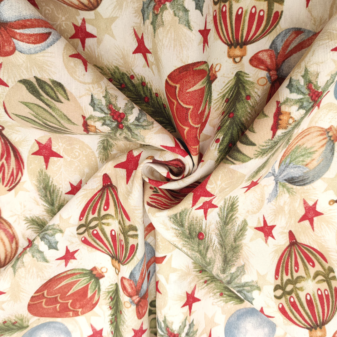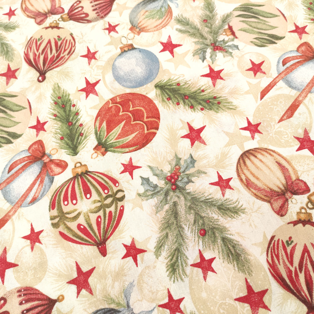 Tessuto Misto Cotone per arredo natalizio a fantasia ideale per arredare la vostra casa in occasione delle festività natalizie, si stira facilmente e resiste ai lavaggi, si presta perfettamente alla creazione di: copritavoli, tovaglie, tendaggi, rivestimenti per divani, sedie, cuscini e poltrone inoltre può essere utilizzato per il cucito creativo.