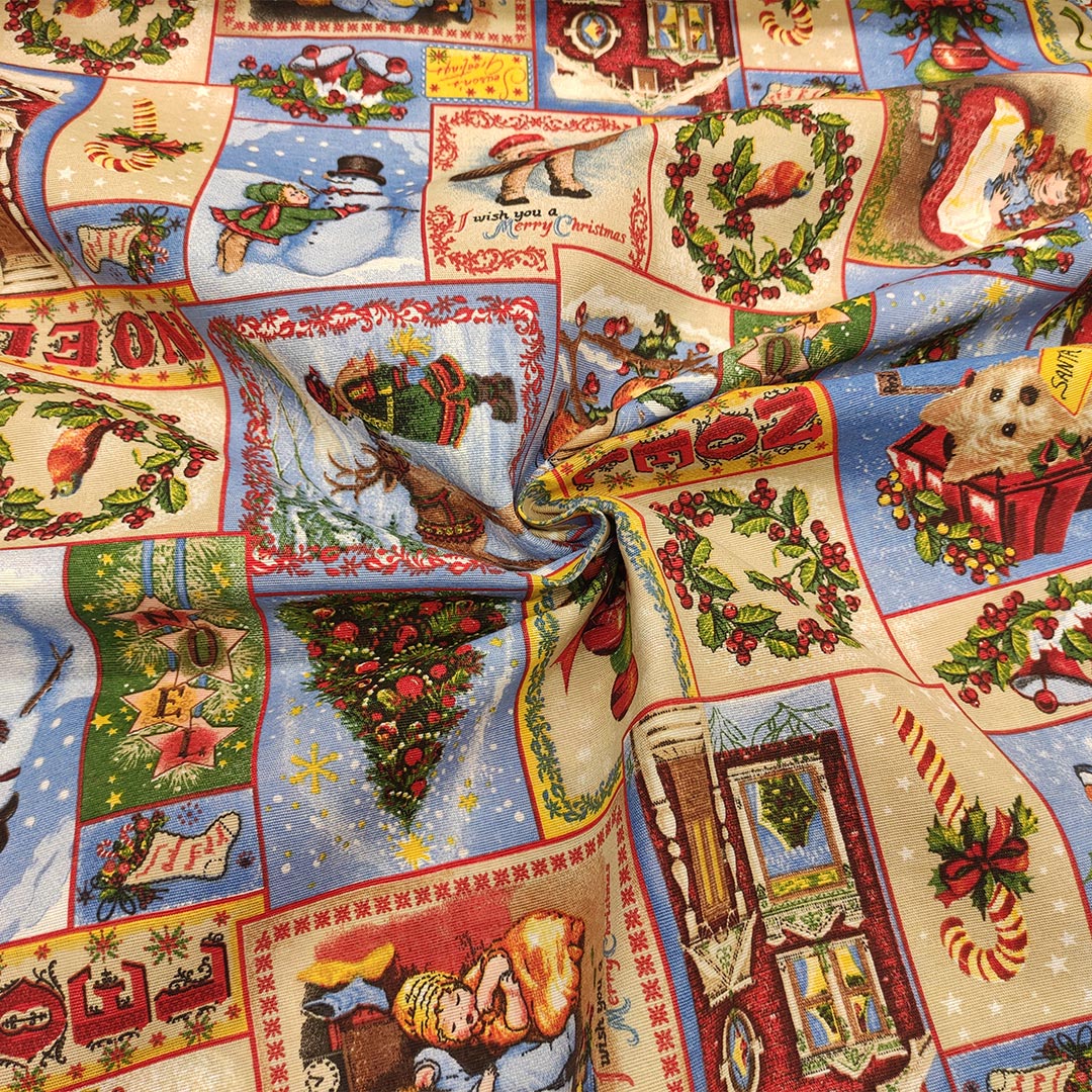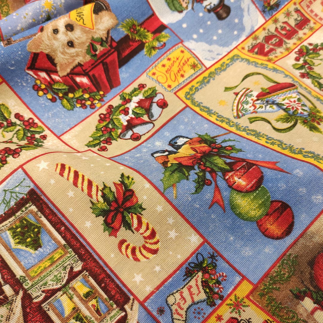 Tessuto Misto Cotone per arredo natalizio a fantasia ideale per arredare la vostra casa in occasione delle festività natalizie, si stira facilmente e resiste ai lavaggi, si presta perfettamente alla creazione di: copritavoli, tovaglie, tendaggi, rivestimenti per divani, sedie, cuscini e poltrone inoltre può essere utilizzato per il cucito creativo.