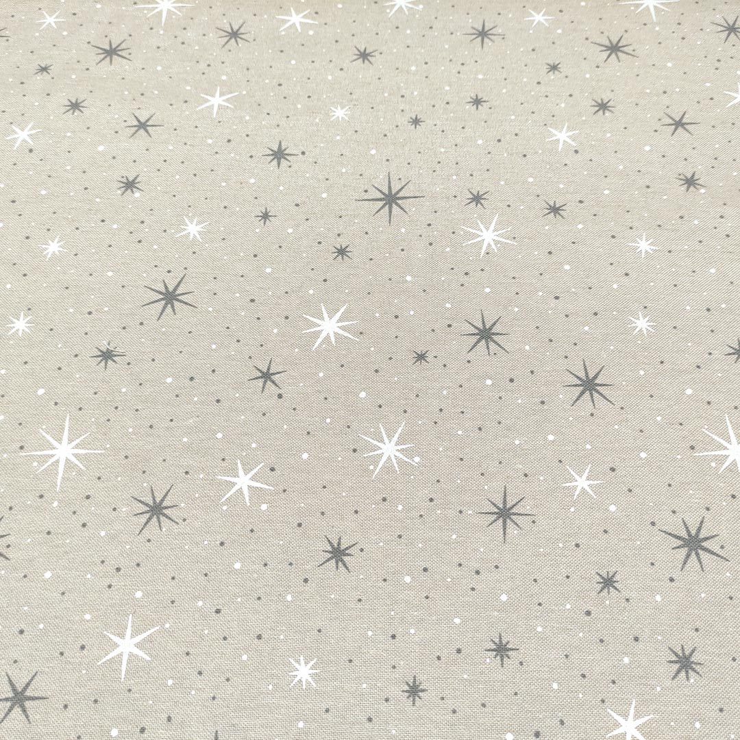 Tessuto Misto Cotone per arredo natalizio a fantasia con stelle beige – grigio – bianco