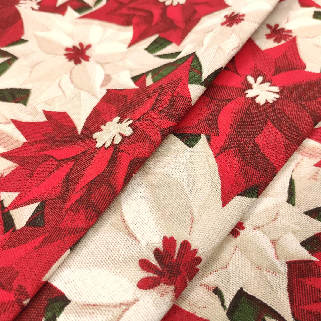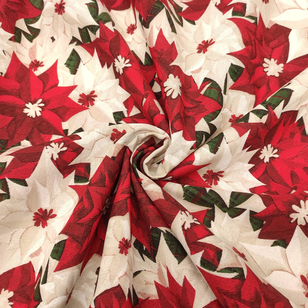 Tessuto Natalizio Decorativo a fantasia misto cotone con rosa di Natale rosso – beige