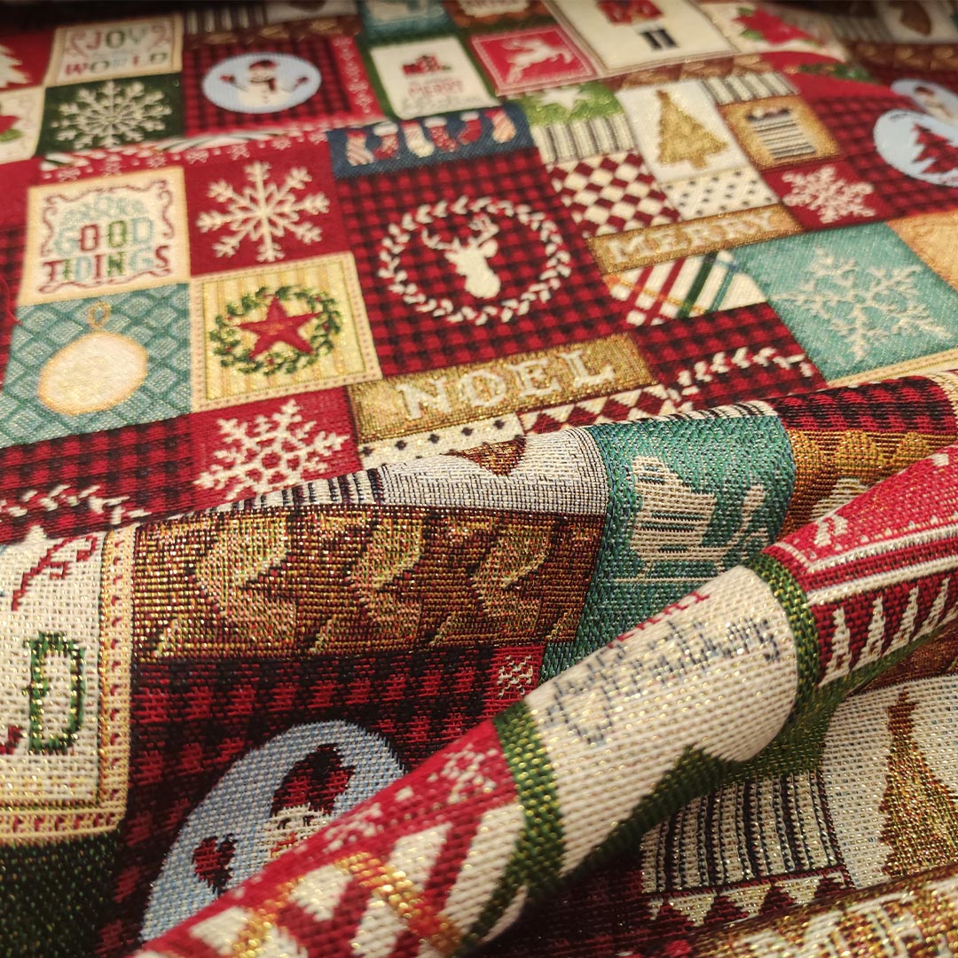 Tessuto per arredo Gobelin lurex natalizio a fantasia ideale per arredare la vostra casa in occasione delle festività natalizie, dalla mano resistente e sostenuta, si presta alla creazione di complementi d’arredo colorati e vivaci come: runner, cuscini, copri tavolo e rivestimenti di divani e poltrone, inoltre è particolarmente utilizzato per il cucito creativo.