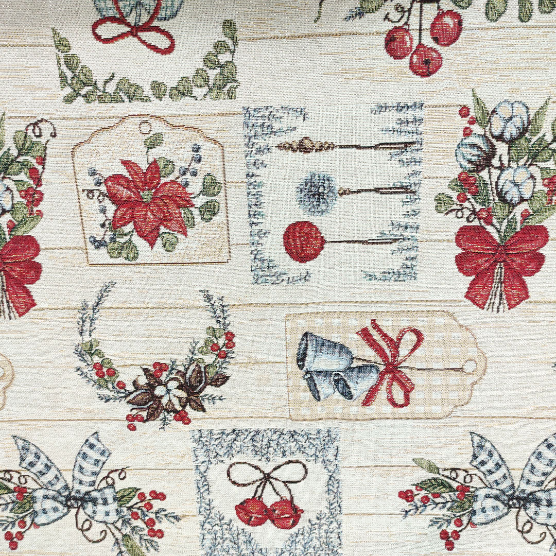 Tessuto per arredo Gobelin lurex natalizio altezza 140 cm a fantasia ideale per arredare la vostra casa in occasione delle festività natalizie, dalla mano resistente e sostenuta, si presta alla creazione di complementi d’arredo colorati e vivaci come: runner, cuscini, copri tavolo e rivestimenti di divani e poltrone, inoltre è particolarmente utilizzato per il cucito creativo.