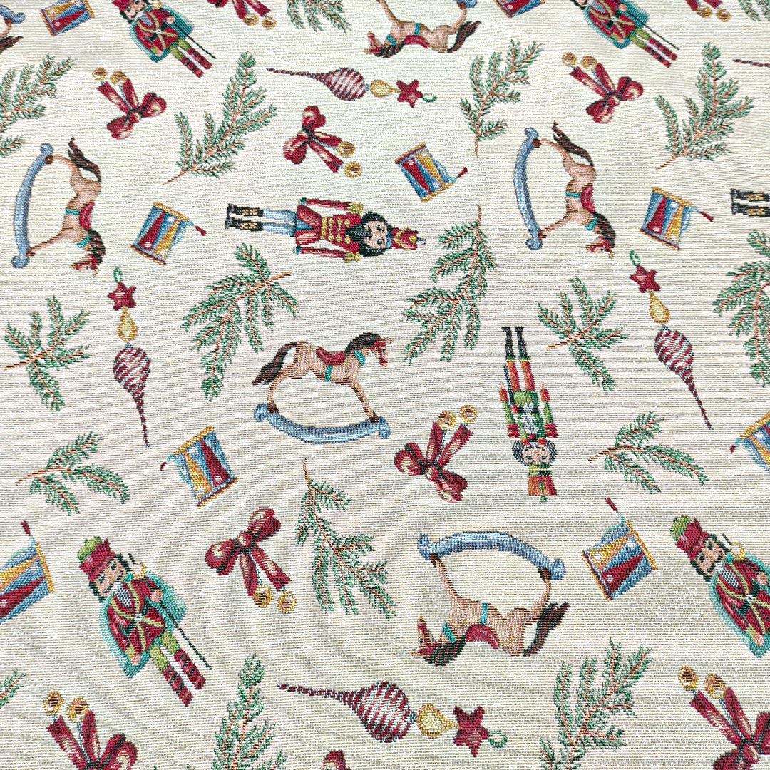 Tessuto per arredo Gobelin natalizio a fantasia ideale per arredare la vostra casa in occasione delle festività natalizie, dalla mano resistente e sostenuta, si presta alla creazione di complementi d’arredo colorati e vivaci come: runner, cuscini, copri tavolo e rivestimenti di divani e poltrone, inoltre è particolarmente utilizzato per il cucito creativo.