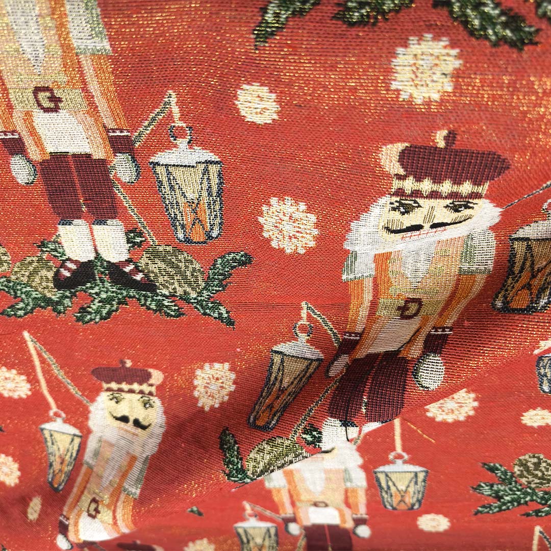 Tessuto per arredo Gobelin natalizio lurex a fantasia con schiaccianoci rosso – oro – verde – beige