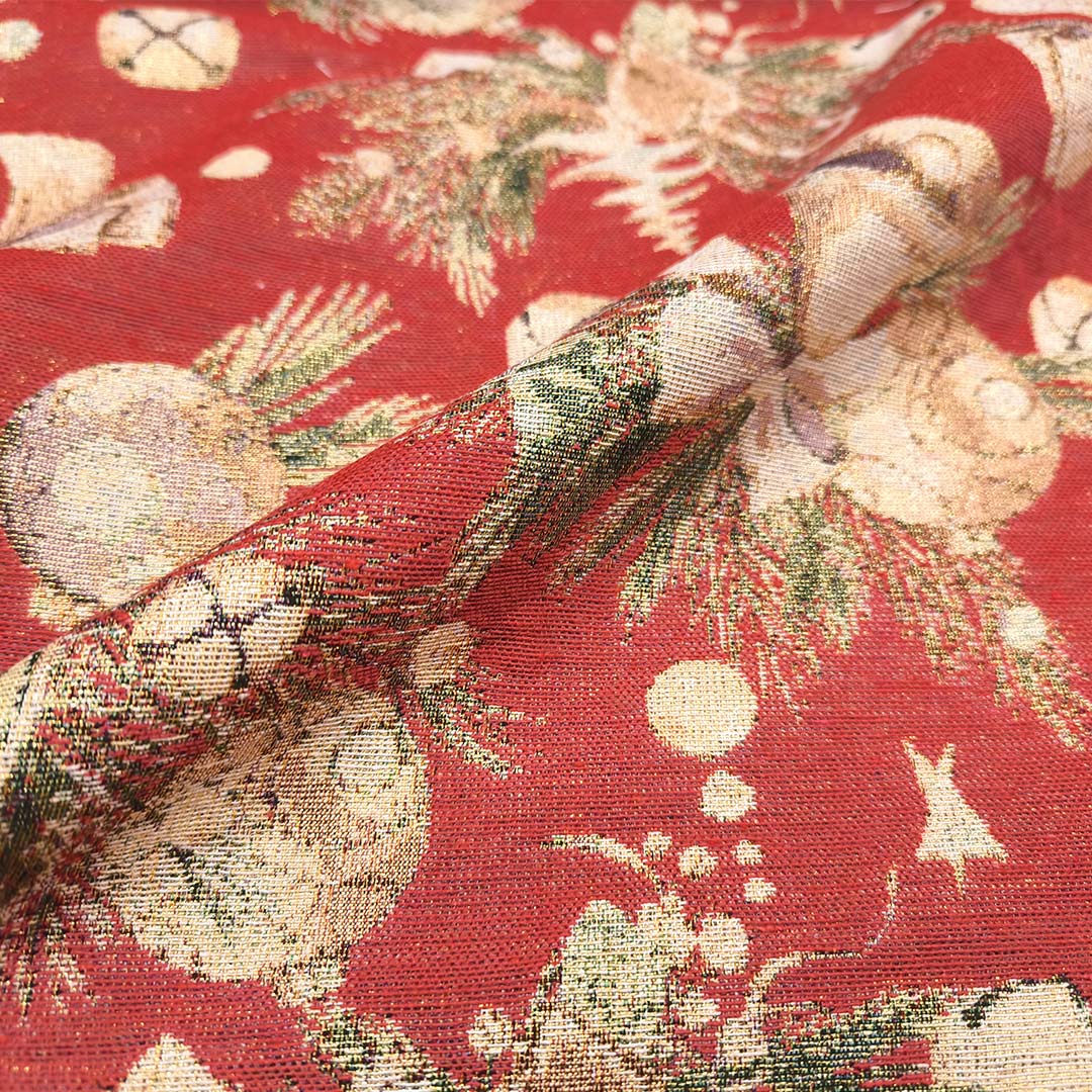 Tessuto per arredo Gobelin lurex natalizio a fantasia ideale per arredare la vostra casa in occasione delle festività natalizie, dalla mano resistente e sostenuta, si presta alla creazione di complementi d’arredo colorati e vivaci come: runner, cuscini, copri tavolo e rivestimenti di divani e poltrone, inoltre è particolarmente utilizzato per il cucito creativo.