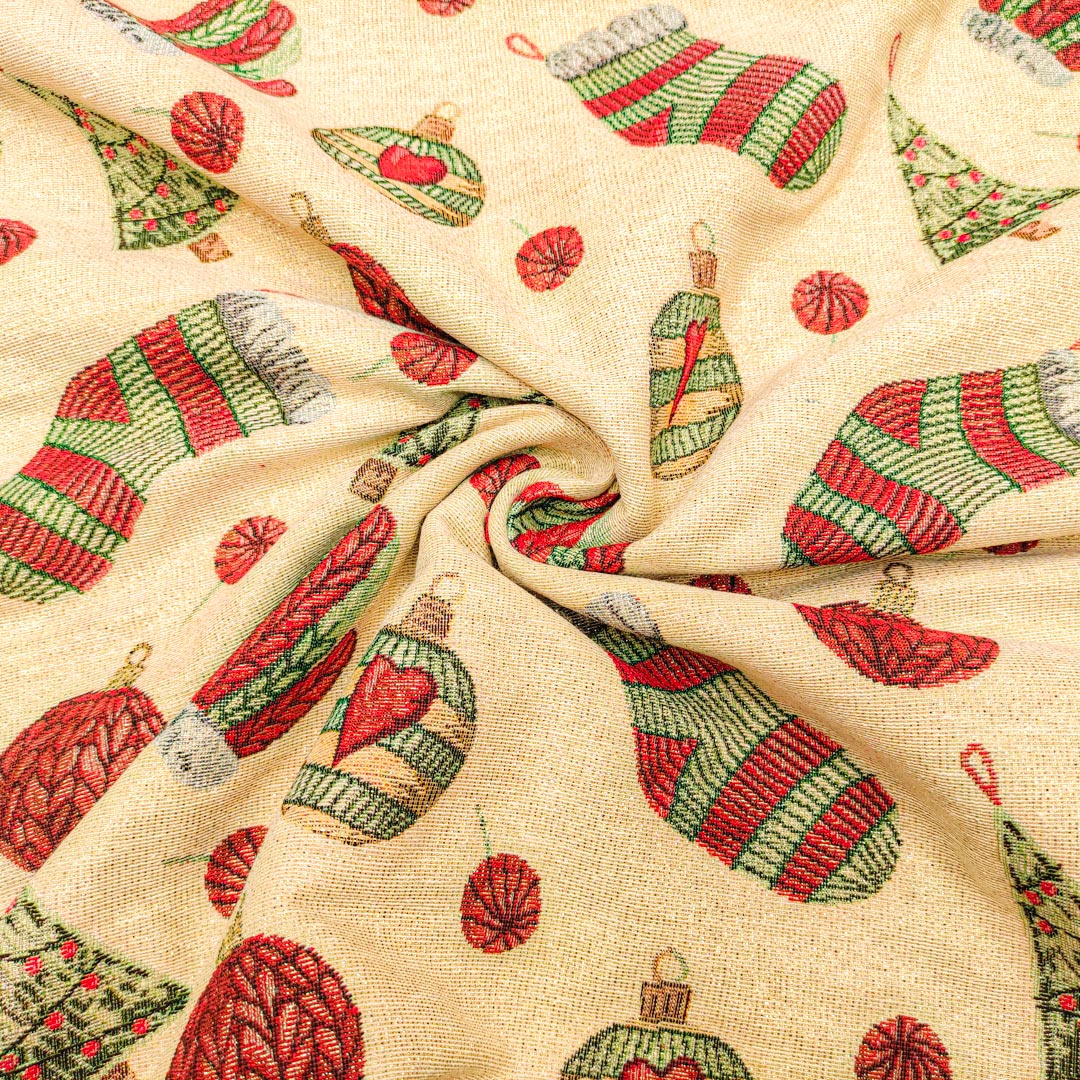 Tessuto per arredo Gobelin lurex natalizio a fantasia ideale per arredare la vostra casa in occasione delle festività natalizie, dalla mano resistente e sostenuta, si presta alla creazione di complementi d’arredo colorati e vivaci come: runner, cuscini, copri tavolo e rivestimenti di divani e poltrone, inoltre è particolarmente utilizzato per il cucito creativo.