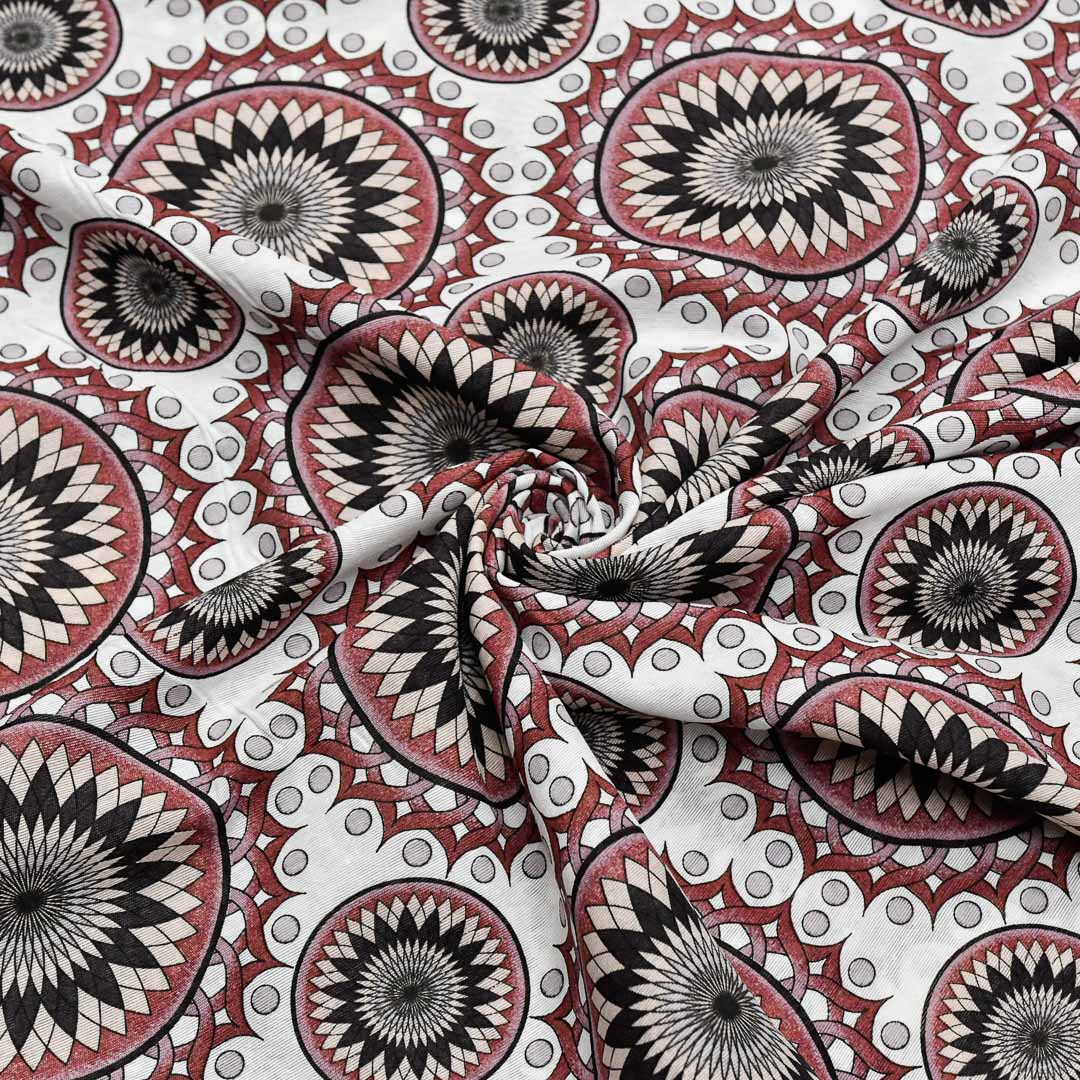 Tessuto Misto Cotone per arredamento a fantasia motivo etnico bordeaux – grigio