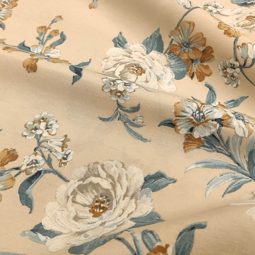 Tessuto misto cotone per arredamento a fantasia motivo floreale beige – coccio – carta da zucchero