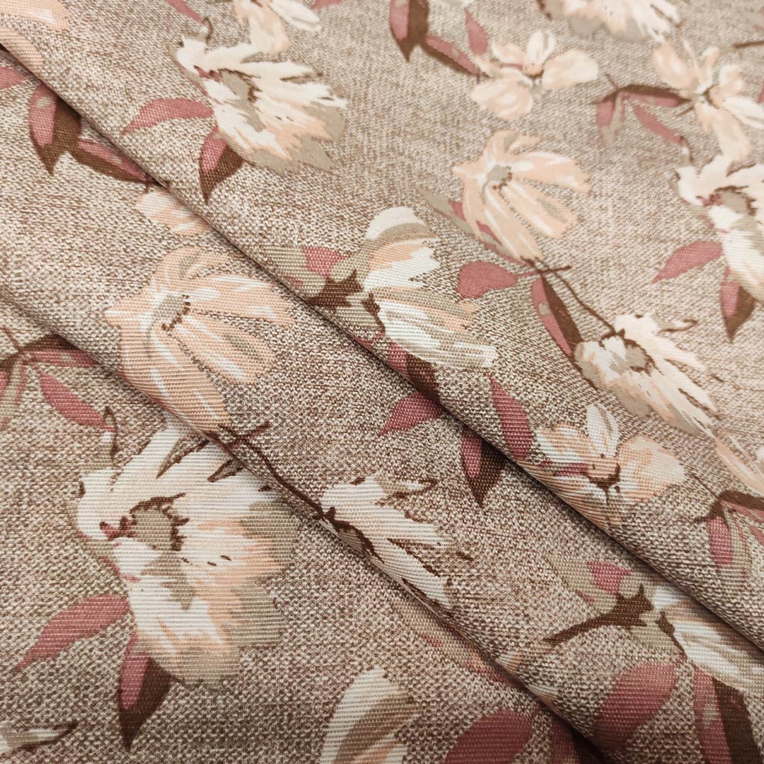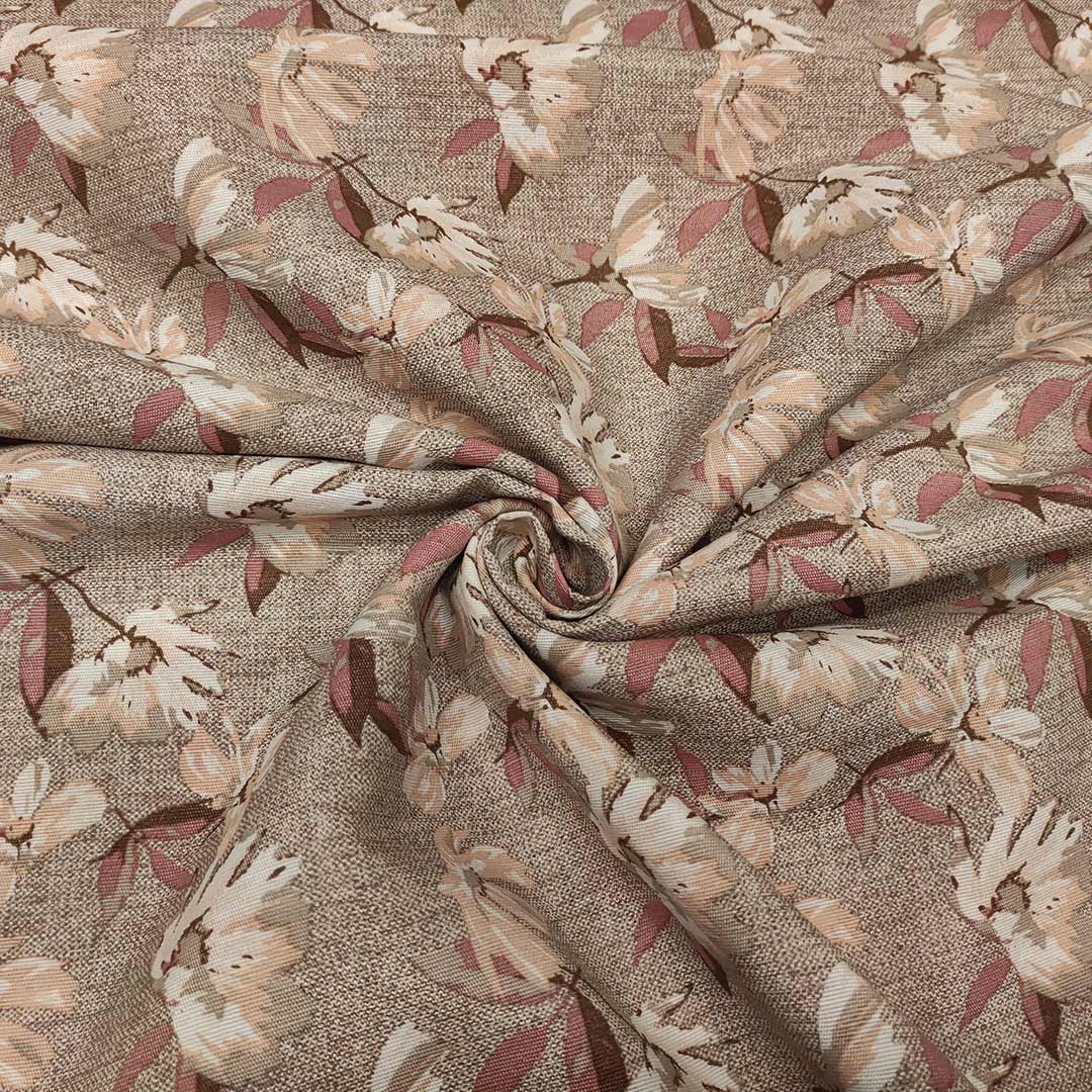 Tessuto misto cotone per arredamento a fantasia motivo floreale rosa – beige – tortora