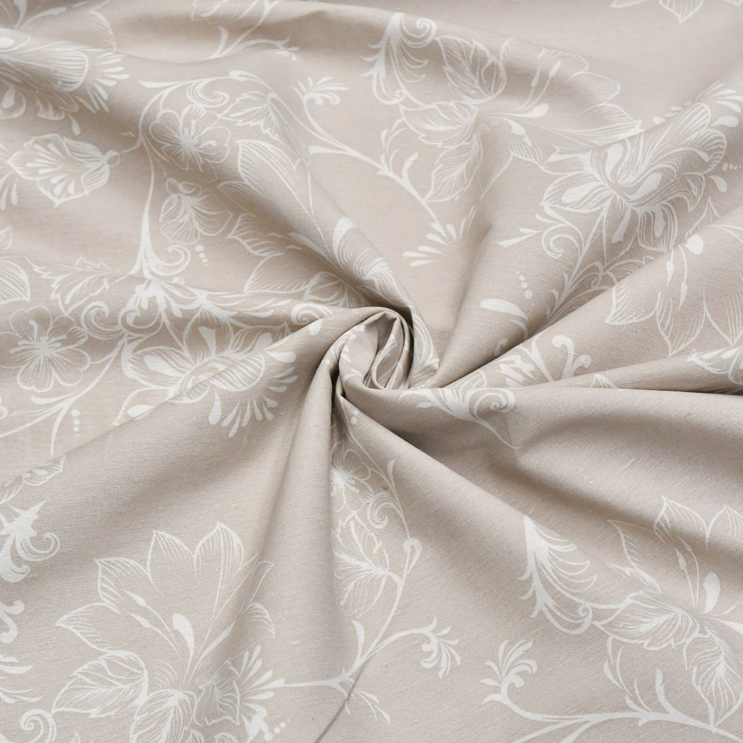 Tessuto Misto Cotone per arredamento a fantasia motivo floreale tortora chiaro – bianco