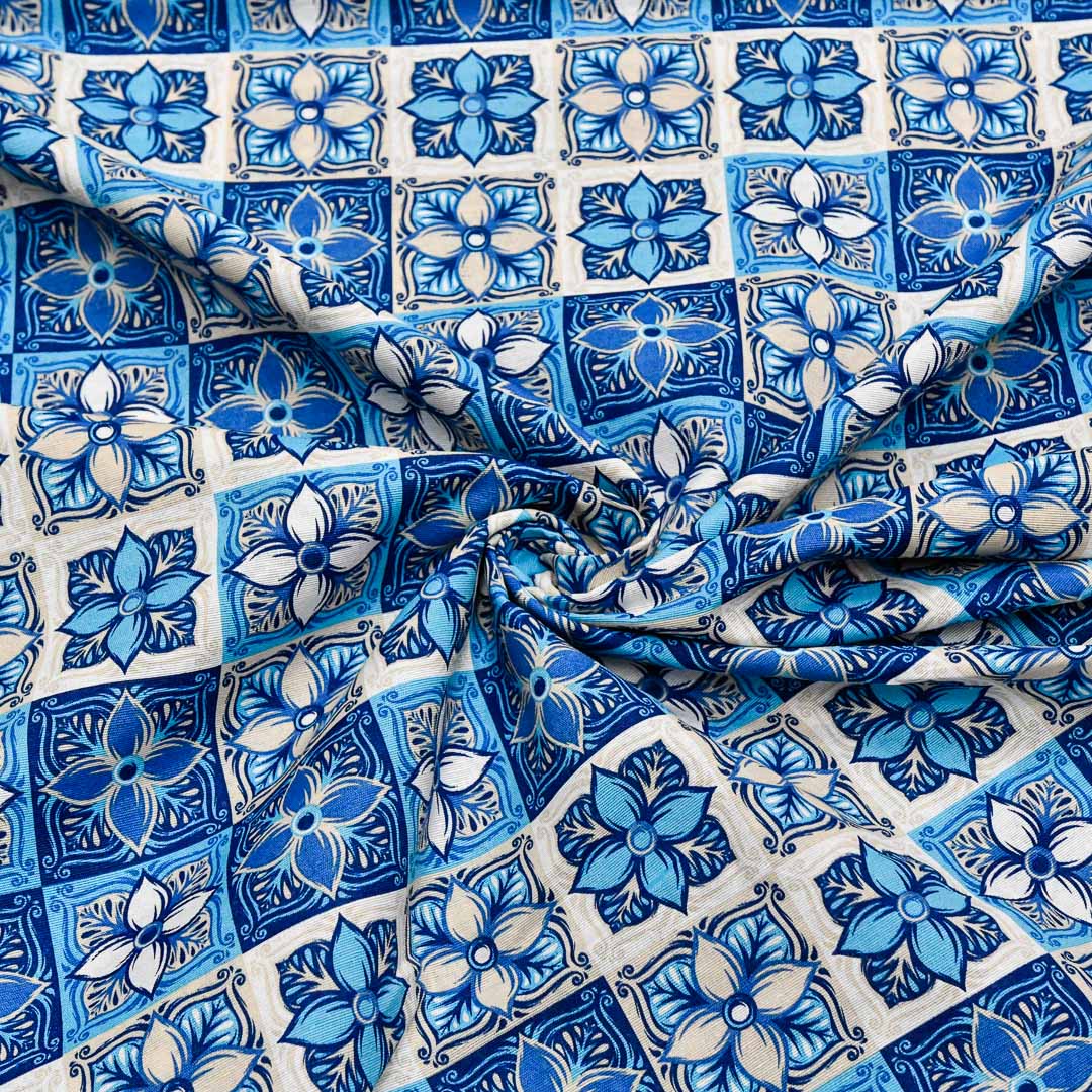 Tessuto Misto Cotone per arredamento a fantasia motivo geometrico turchese – blu