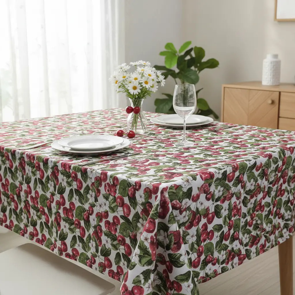 Tessuto Misto Cotone per arredo a fantasia motivo ciliegie bianco – rosso – verde