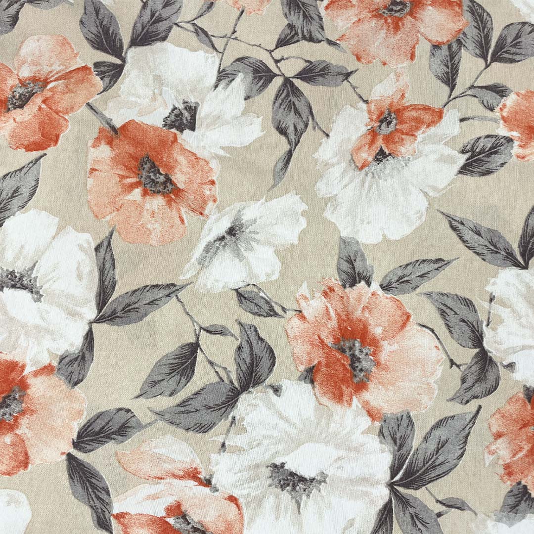 Tessuto Misto Cotone per arredo a fantasia motivo floreale beige – arancio – grigio