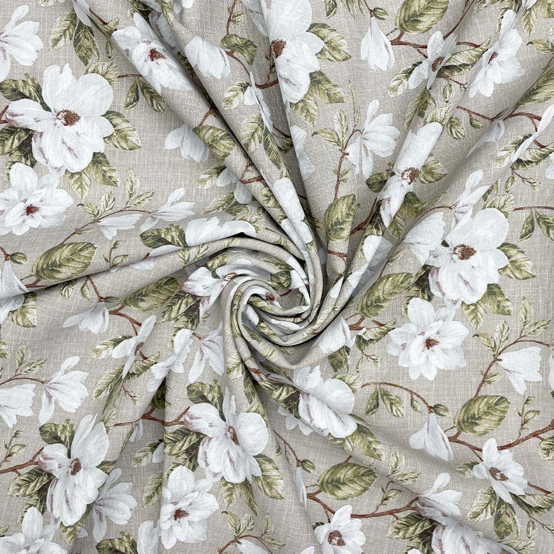 Tessuto Misto Cotone per arredo a fantasia motivo floreale beige – bianco – verde – marrone