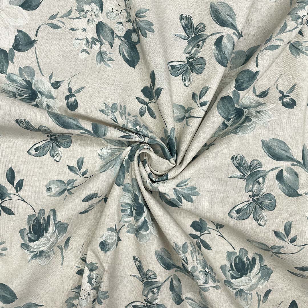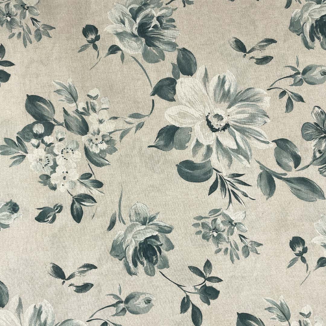 Tessuto Misto Cotone per arredo a fantasia motivo floreale panna – petrolio