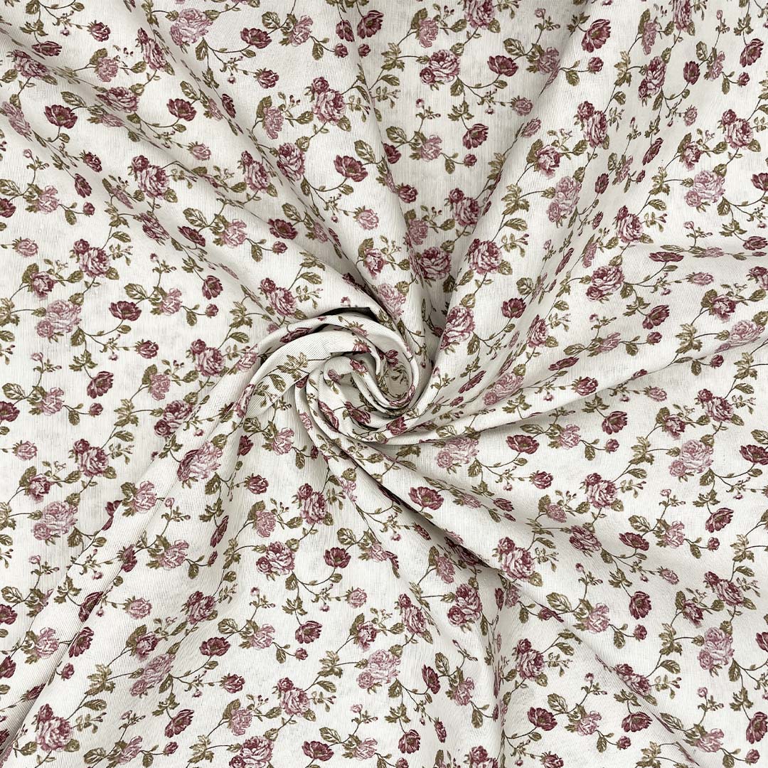 Tessuto Misto Cotone per arredo a fantasia motivo floreale panna – verde – rosa – bordeaux