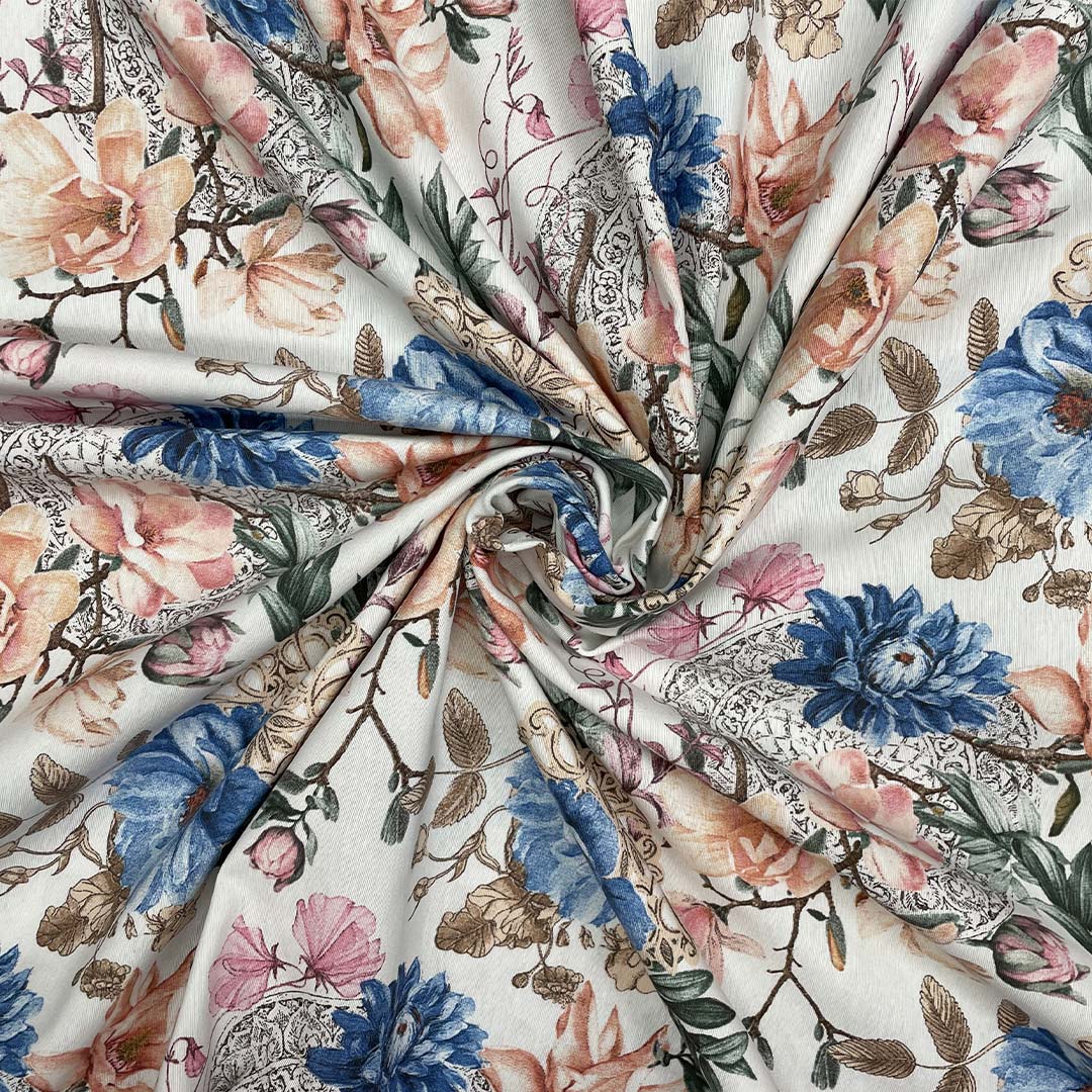 Tessuto Misto Cotone per arredo a fantasia motivo floreale rosa – bianco – azzurro – verde
