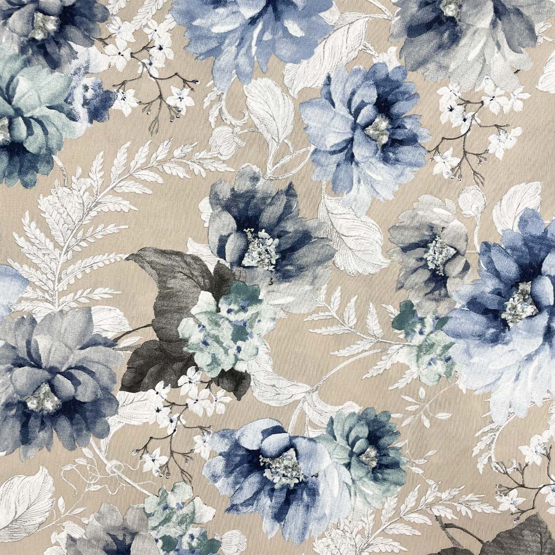 Tessuto Misto Cotone per arredo a fantasia motivo floreale tortora – carta da zucchero – verde