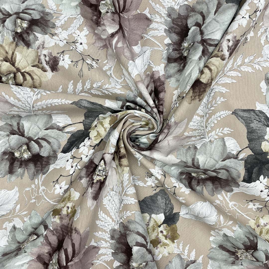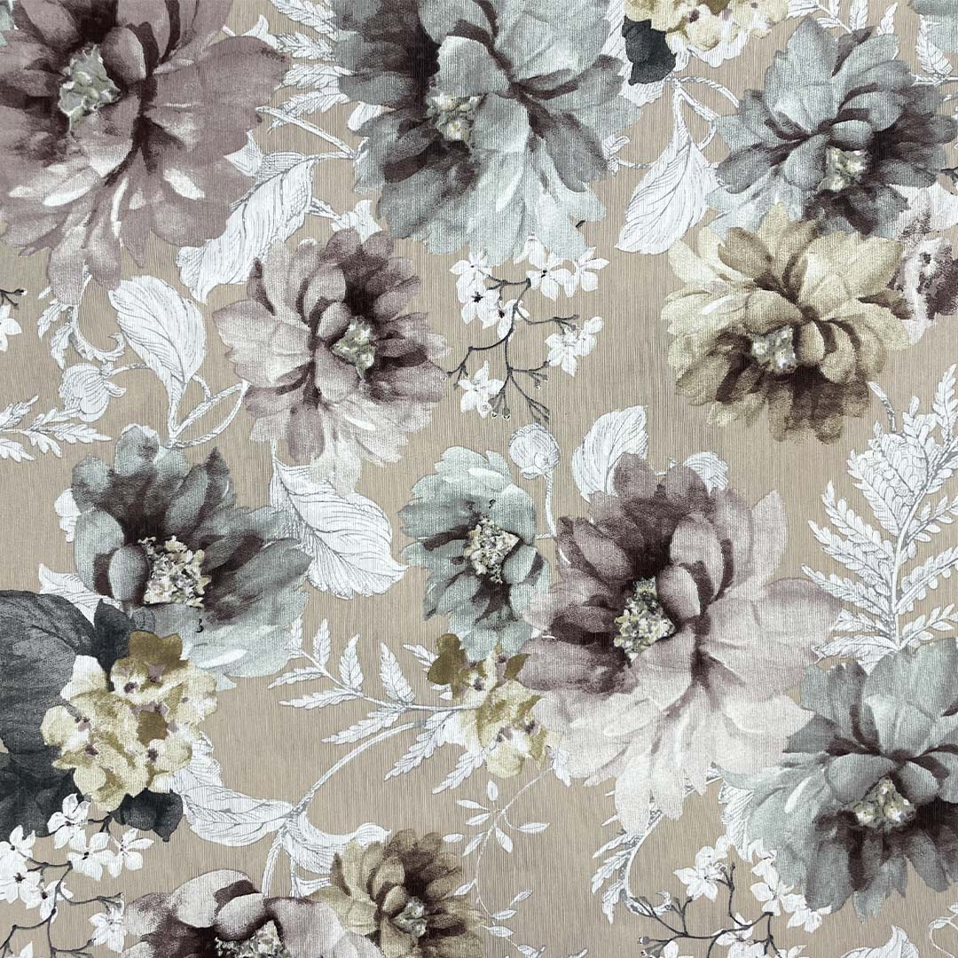 Tessuto Misto Cotone per arredo a fantasia motivo floreale tortora – verde salvia – marrone