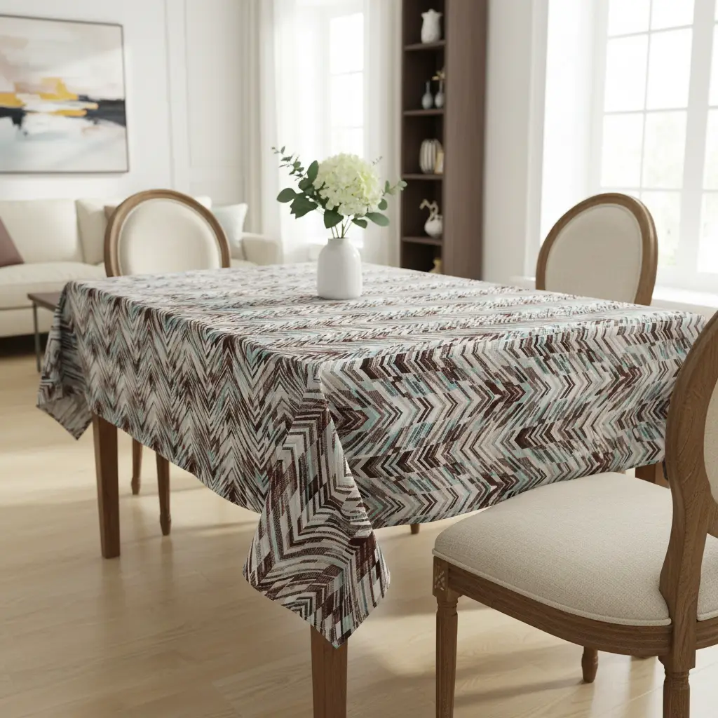 Tessuto Misto Cotone per arredo a fantasia motivo geometrico marrone – turchese – bianco