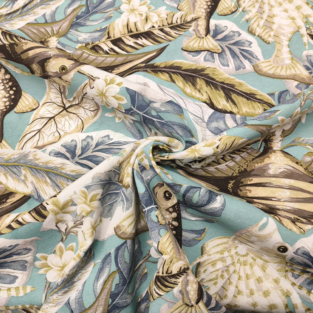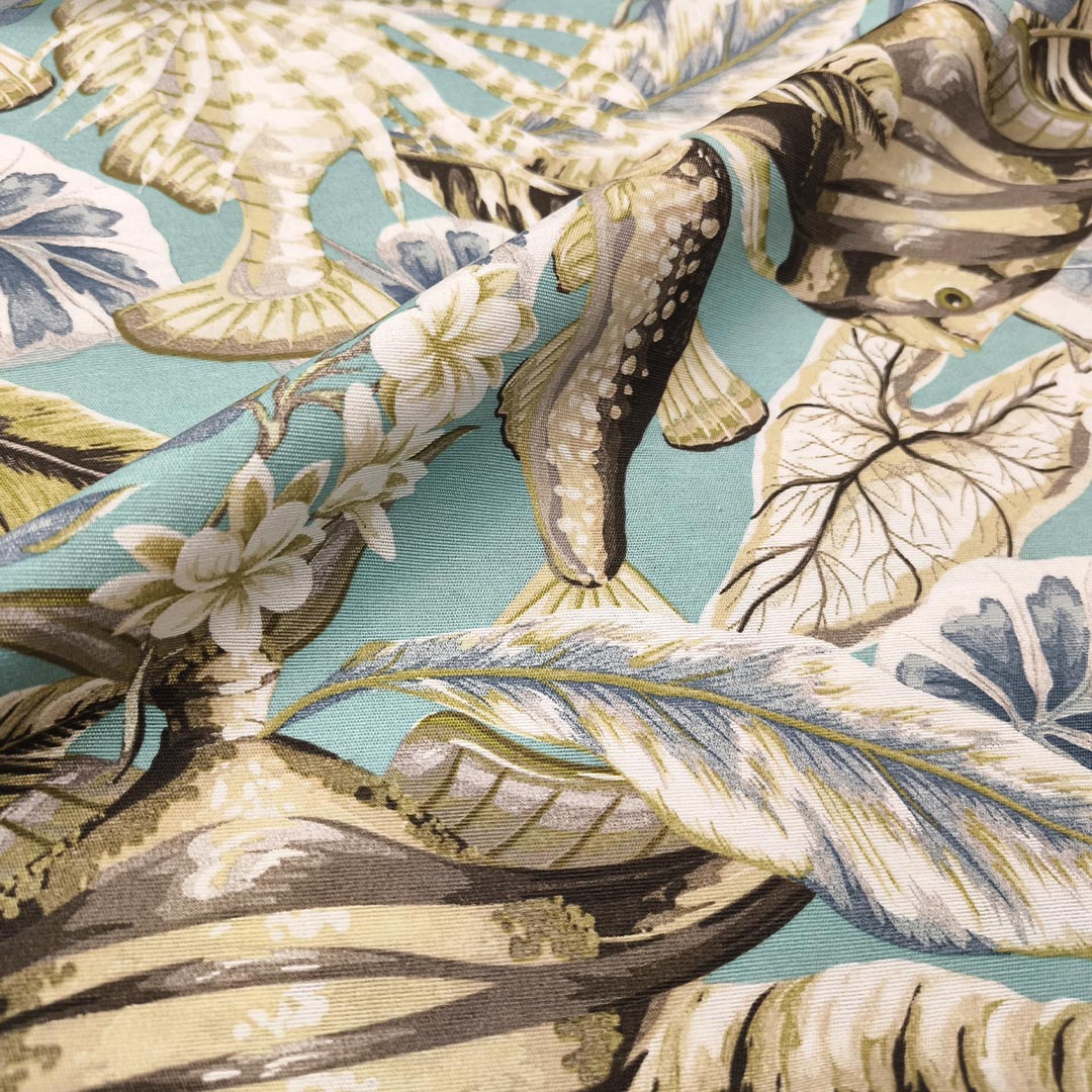 Tessuto Misto Cotone per arredo a fantasia motivo marino acquamarina – grigio – beige