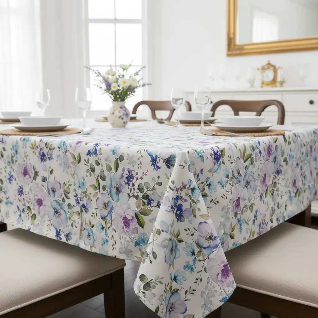 Tessuto Panama di Cotone per arredamento a fantasia motivo floreale bianco – lilla – viola