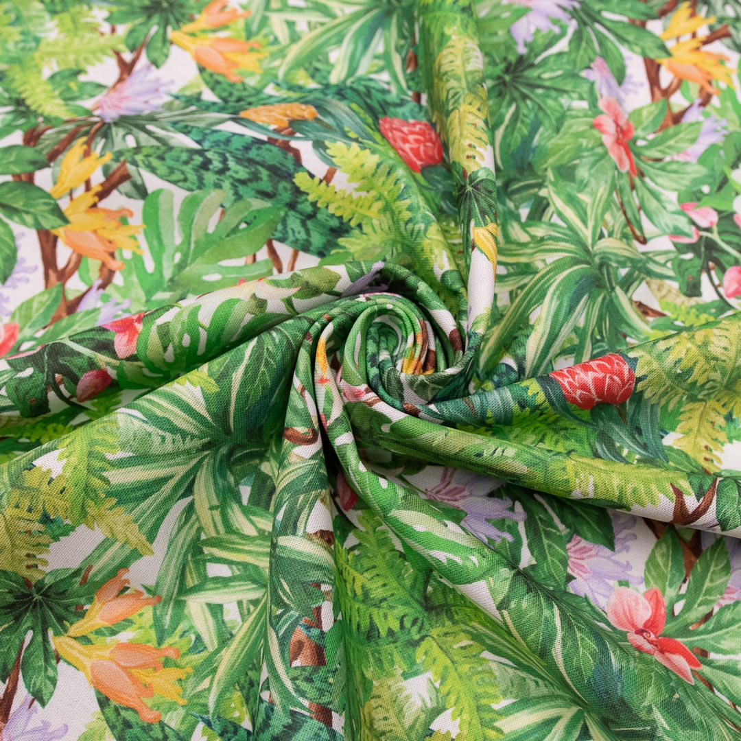Tessuto Panama di Cotone per arredamento a fantasia motivo floreale bianco – verde – lilla