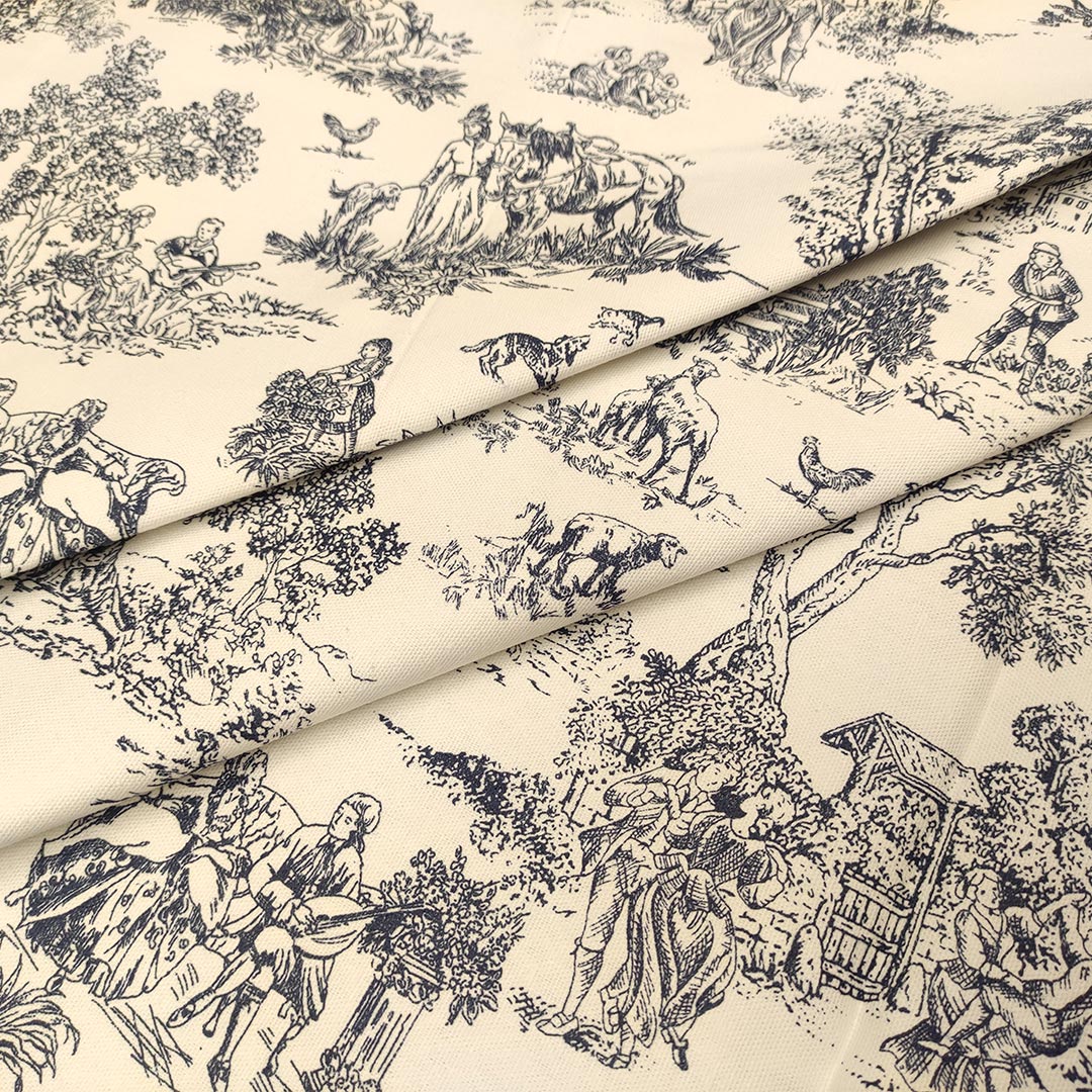 Tessuto Panama in cotone per arredo a fantasia motivo astratto bianco seta – blu navy