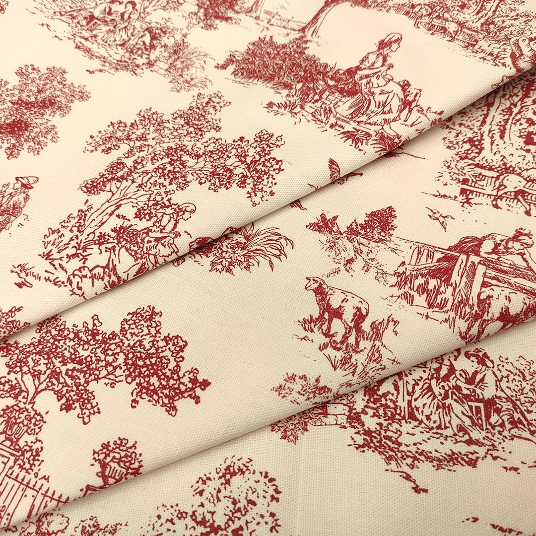 Tessuto Panama in cotone per arredo a fantasia motivo astratto bianco seta – rosso