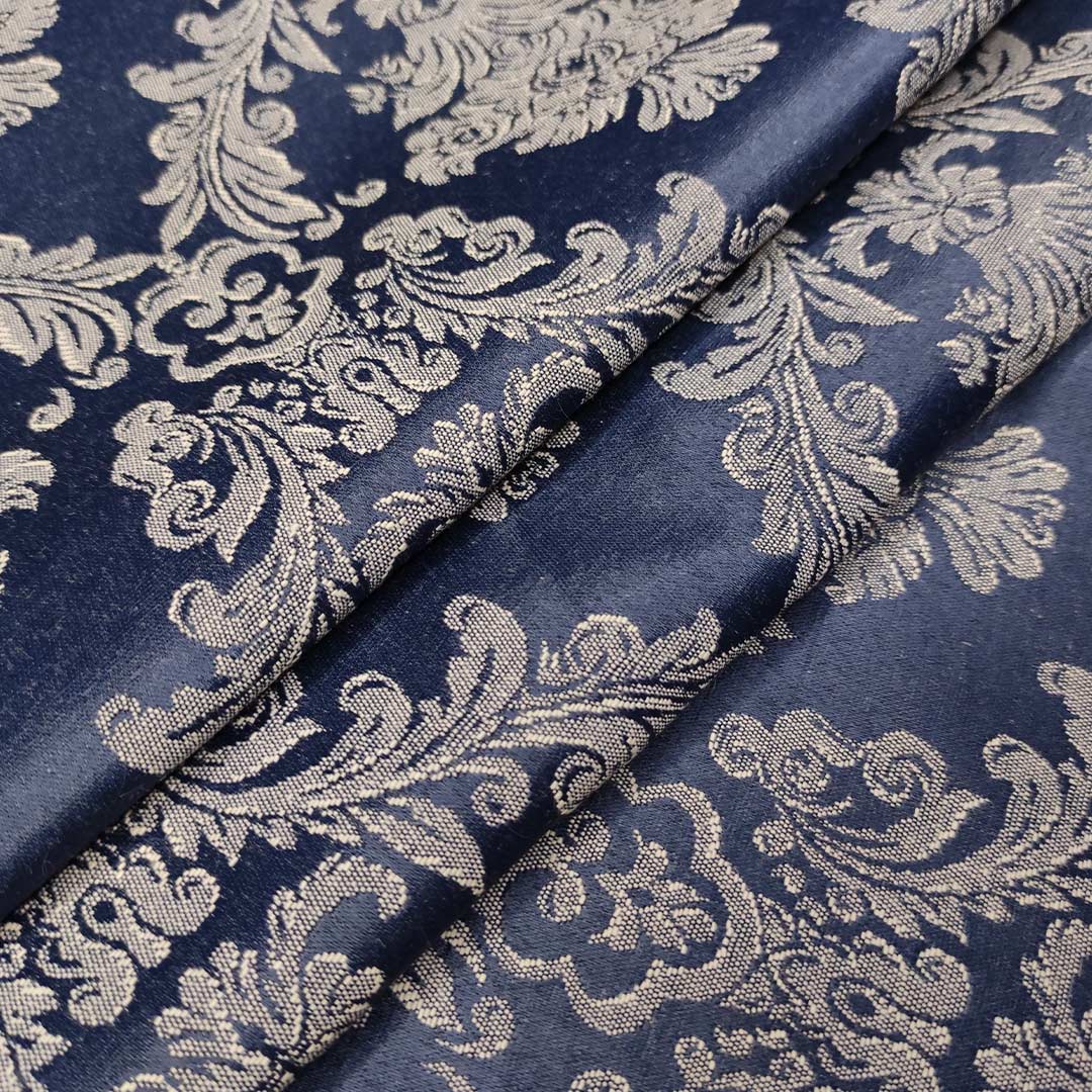 Tessuto raso damascato a fantasia motivo floreal blu – beige