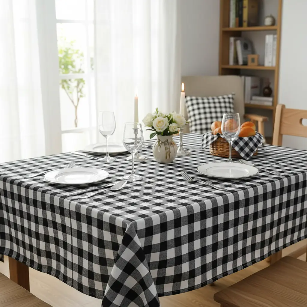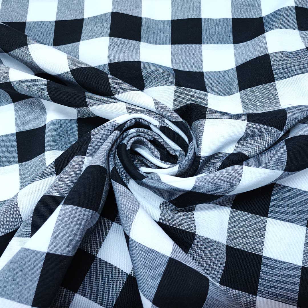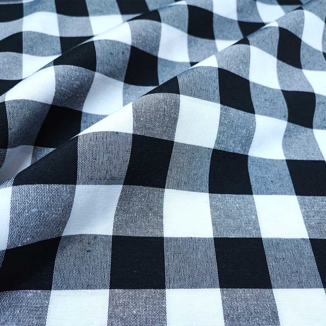 Tessuto Cotone per tovagliato tinto in filo motivo quadro grande bianco – nero