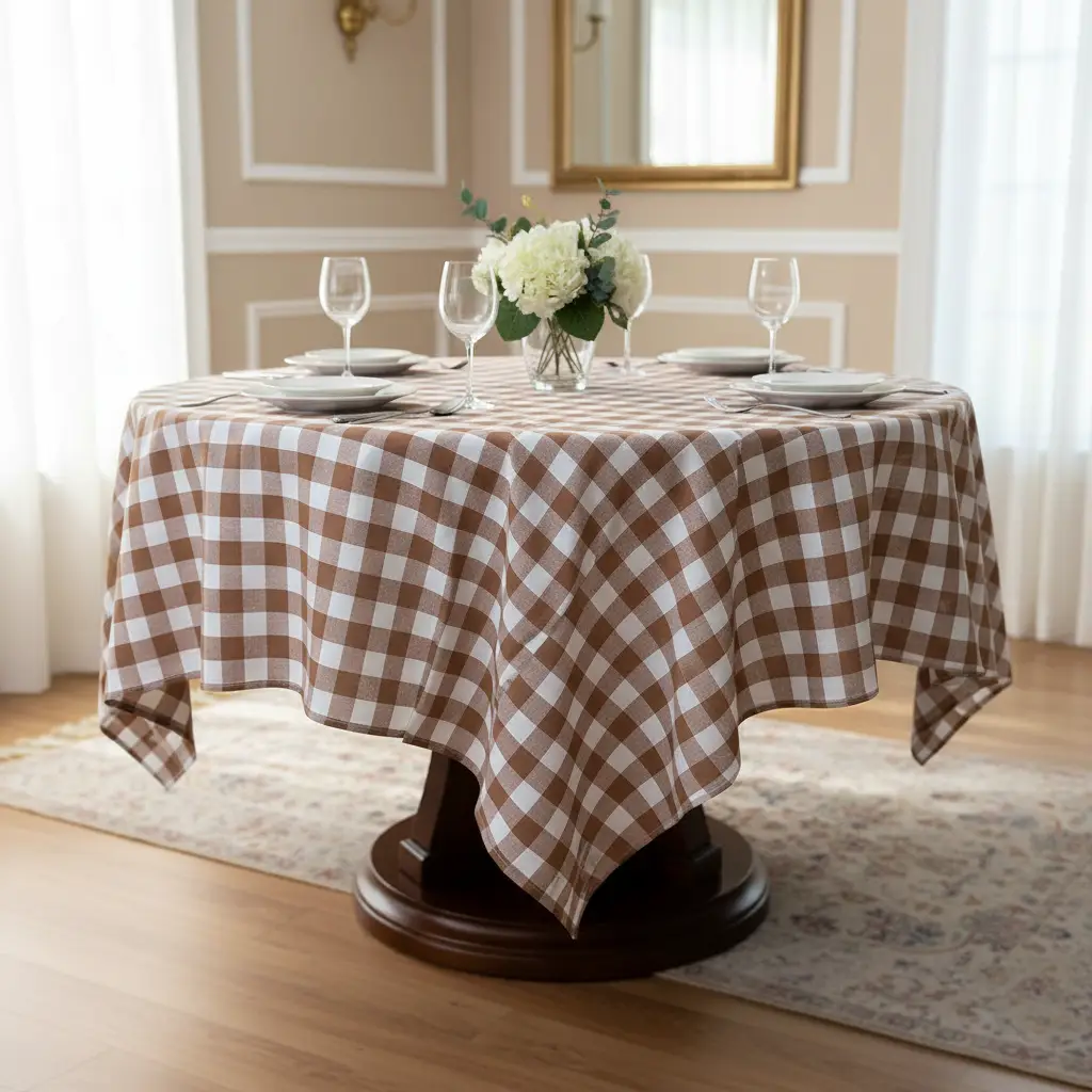 Tessuto Cotone per tovagliato tinto in filo motivo quadro grande bianco – nocciola