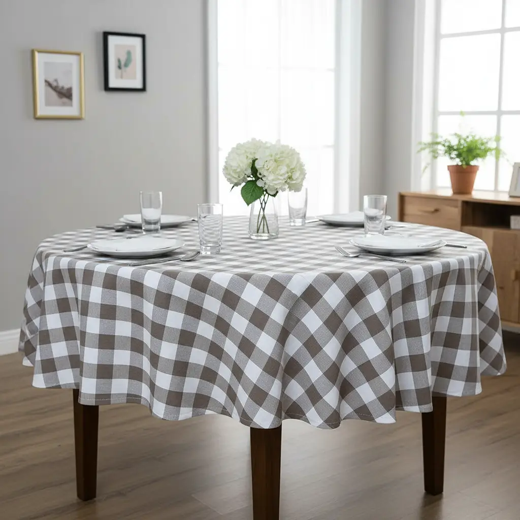Tessuto Cotone per tovagliato tinto in filo motivo quadro grande bianco – tortora