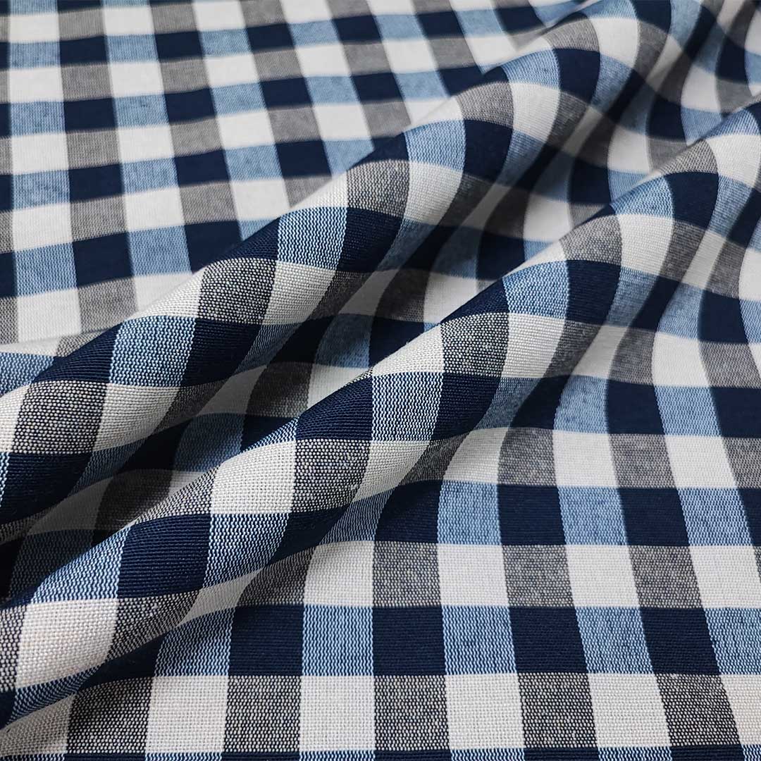 Tessuto Cotone per tovagliato tinto in filo motivo quadro medio beige – blu notte