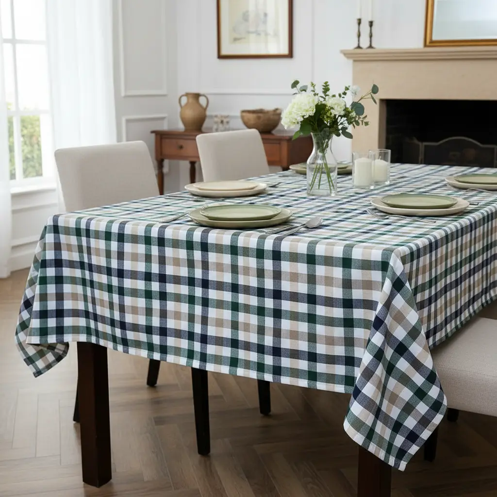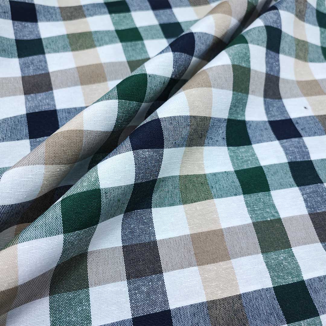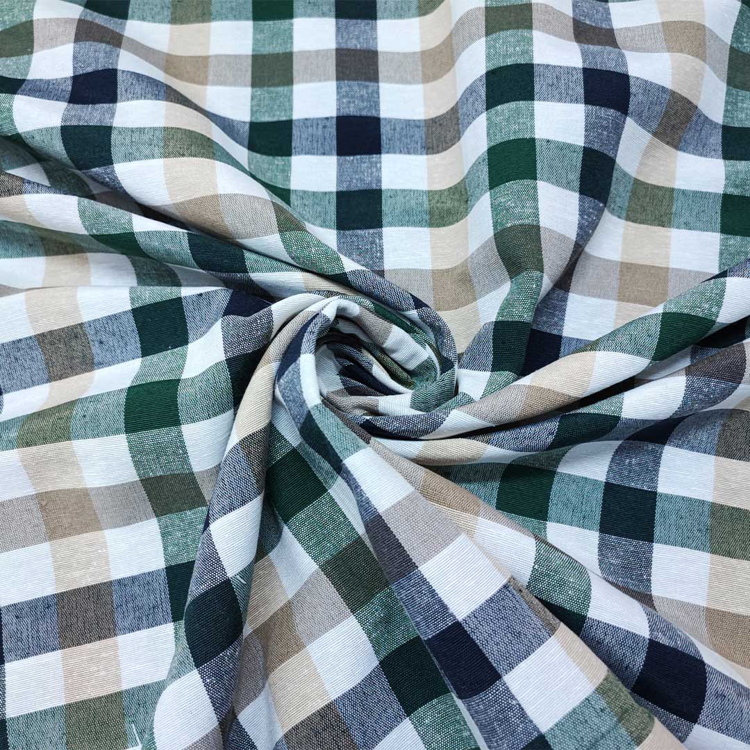 Tessuto Cotone per tovagliato tinto in filo motivo quadro medio bianco – verde – blu – beige