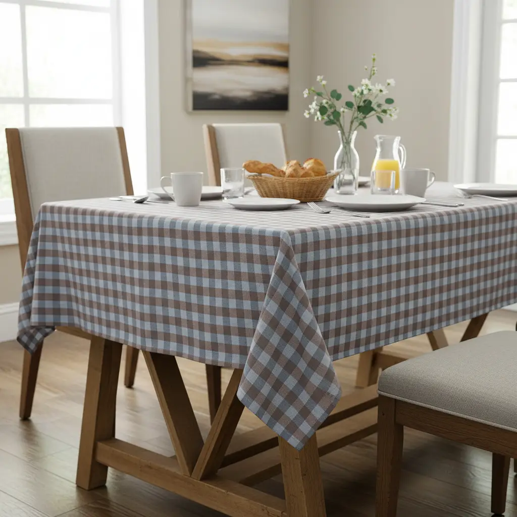 Tessuto Cotone per tovagliato tinto in filo motivo quadro medio grigio perla – nocciola