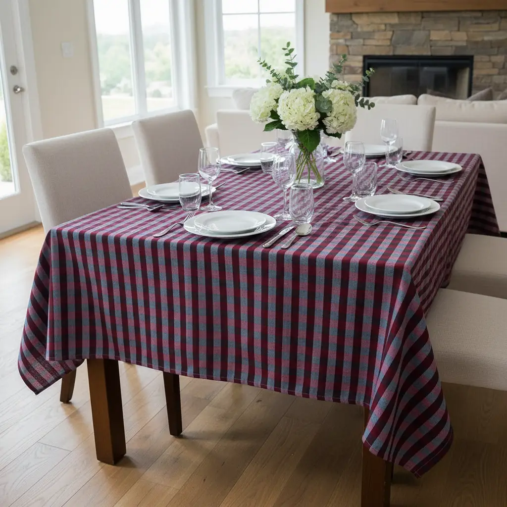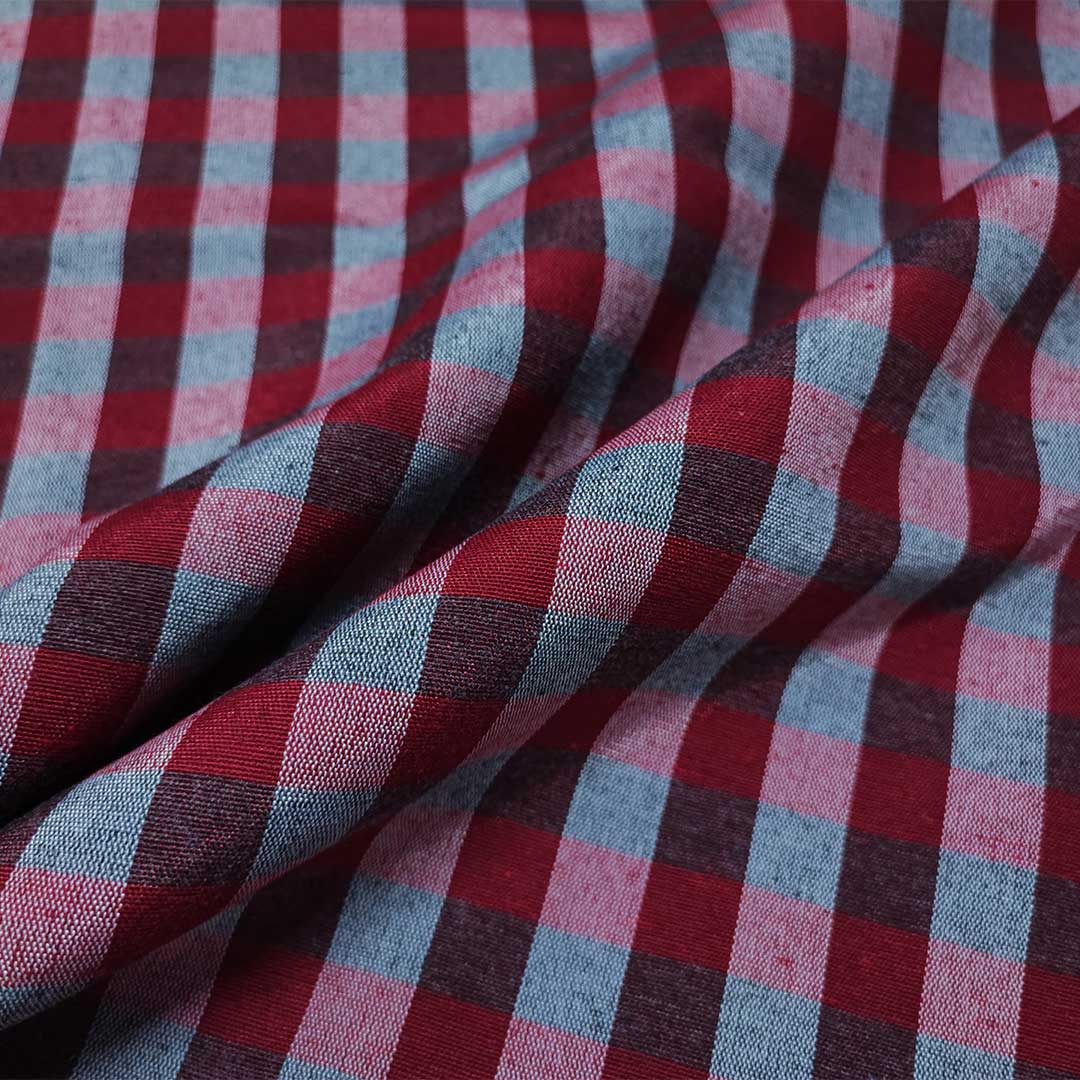 Tessuto Cotone per tovagliato tinto in filo motivo quadro medio rosso scuro – blu notte