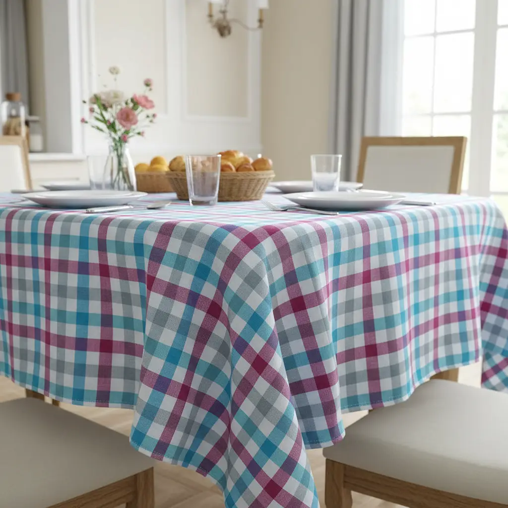 Tessuto Cotone per tovagliato tinto in filo motivo quadro medio ideale per arredare la casa, si stira facilmente e resiste ai lavaggi, si presta perfettamente alla creazione di: copritavoli, tovaglie, tendaggi, rivestimenti per divani, sedie, cuscini e poltrone inoltre può essere utilizzato per il cucito creativo. Dimensione quadro 1,5×1,5 cm