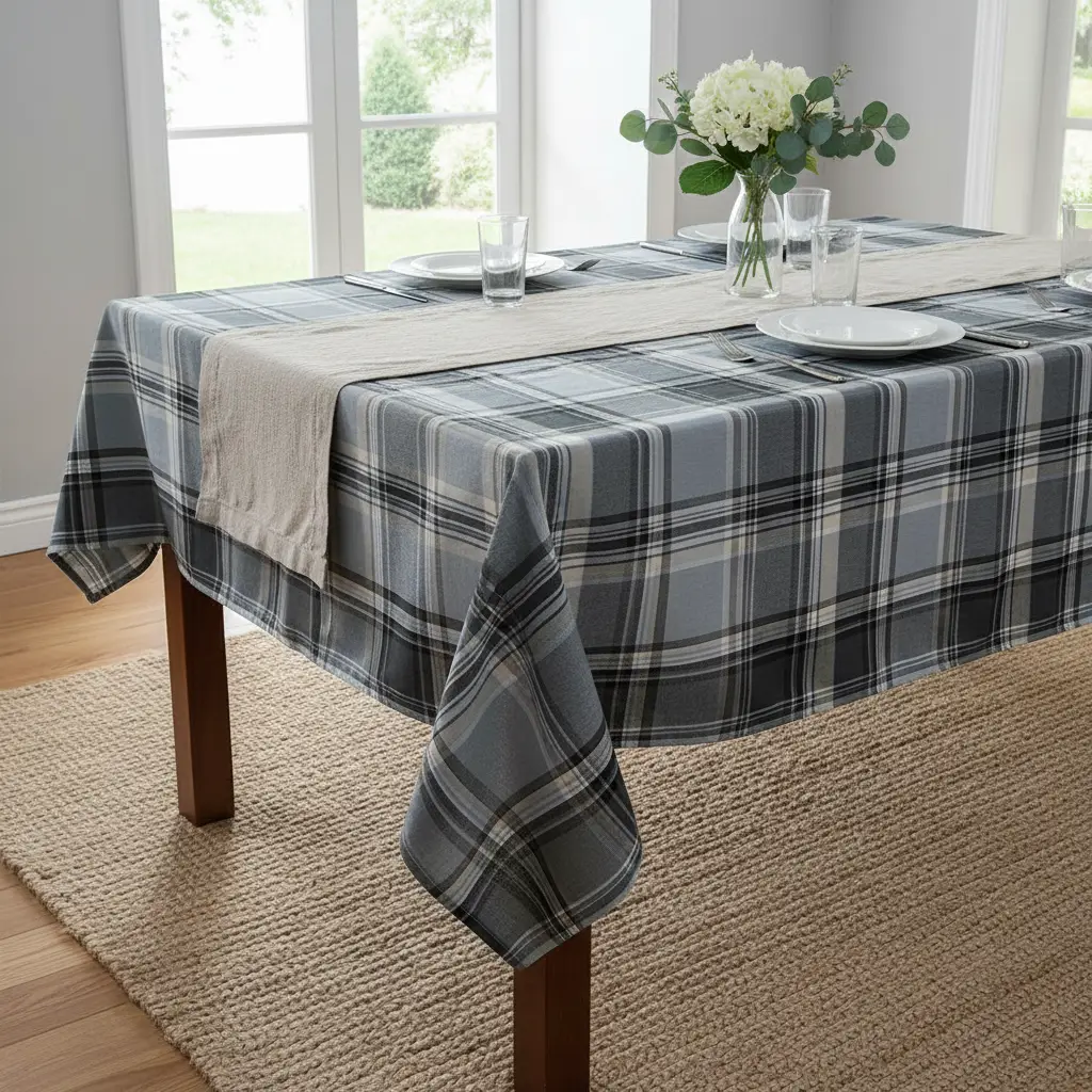 Tessuto Cotone per tovagliato tinto in filo motivo quadro nero – grigio – beige