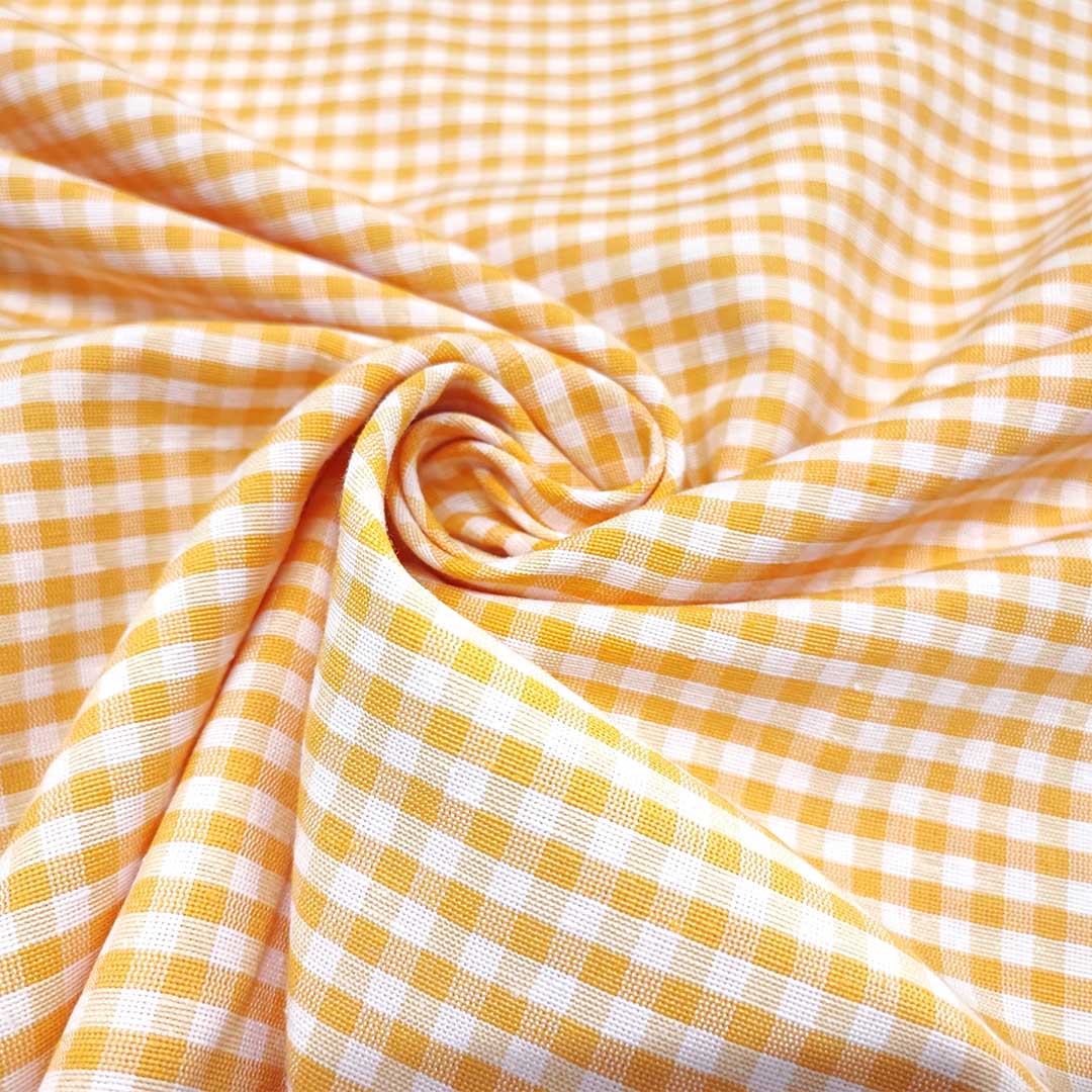 Tessuto Cotone per tovagliato tinto in filo motivo quadro piccolo bianco – giallo