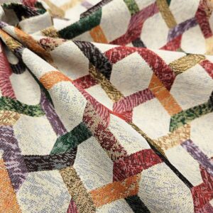 €18,50Il prezzo originale era: €18,50.€13,00Il prezzo attuale è: €13,00. al metroTessuto per arredo Gobelin a fantasia motivo geometrico beige – ocra – bordeaux