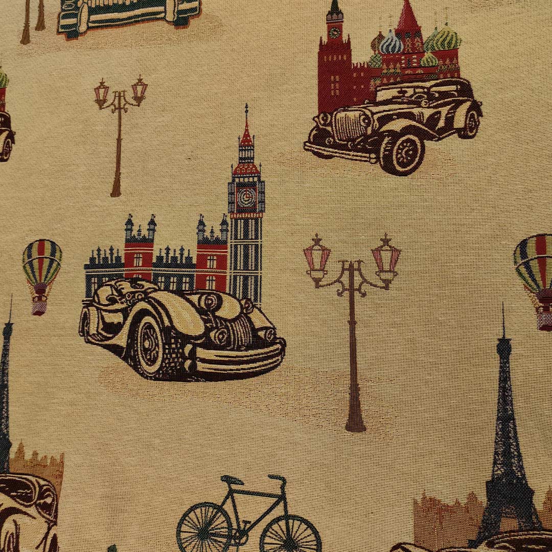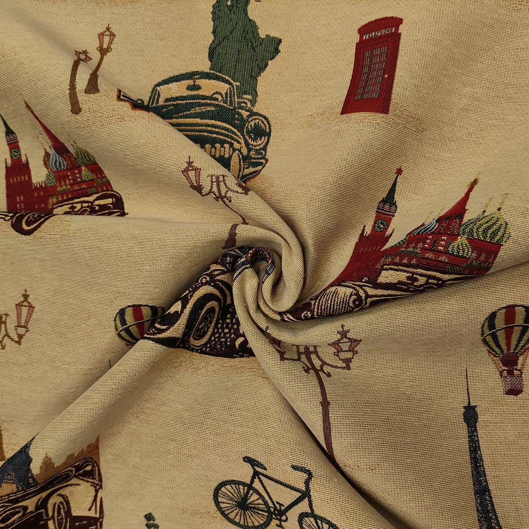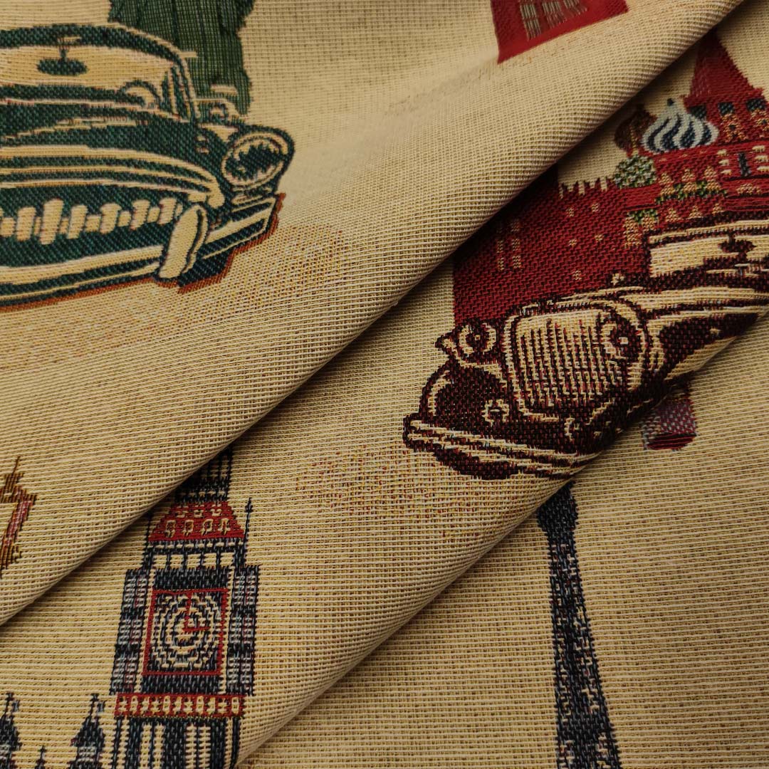 Tessuto Gobelin a fantasia dalla mano resistente e sostenuta, si presta alla creazione di complementi d’arredo colorati e vivaci come: runner, cuscini, copri tavolo e rivestimenti di divani e poltrone, inoltre è particolarmente utilizzato per realizzare borse.