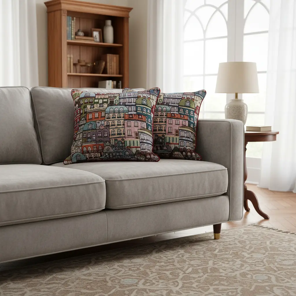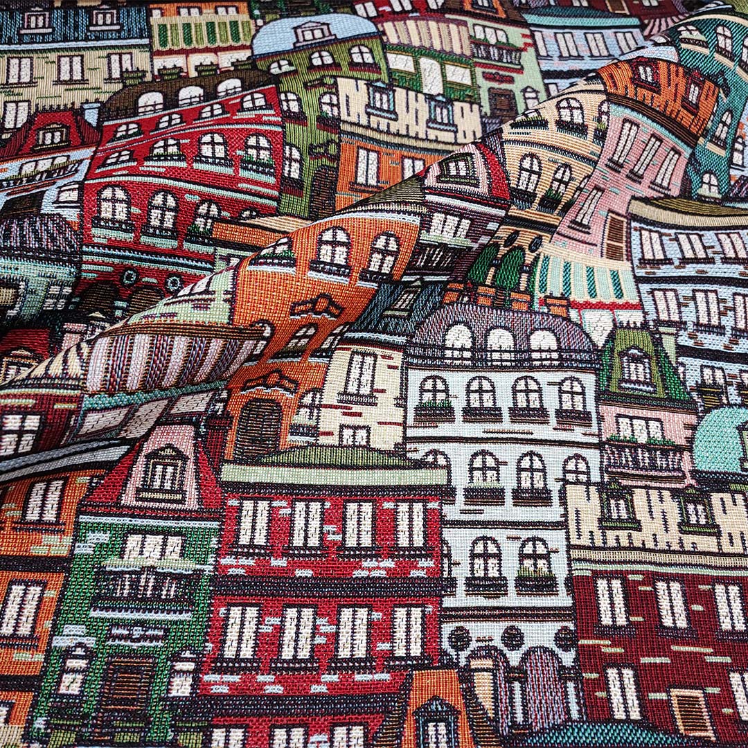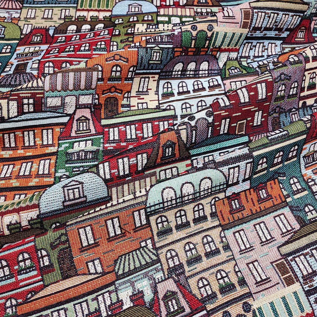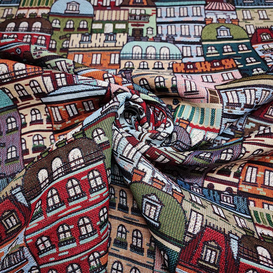 Tessuto Gobelin a fantasia dalla mano resistente e sostenuta, si presta alla creazione di complementi d’arredo colorati e vivaci come: runner, cuscini, copri tavolo e rivestimenti di divani e poltrone, inoltre è particolarmente utilizzato per realizzare borse.