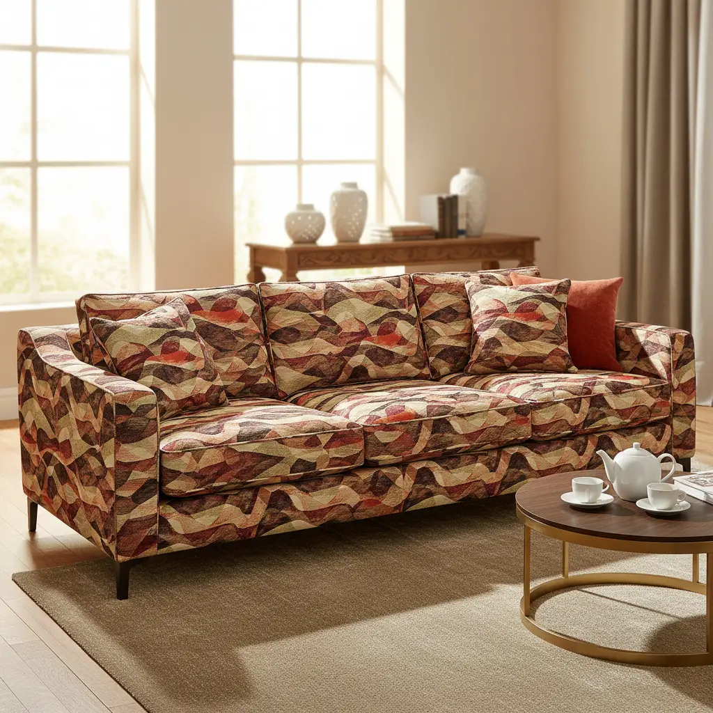 Tessuto per arredo Gobelin a fantasia motivo astratto beige – verde salvia – arancio – coccio