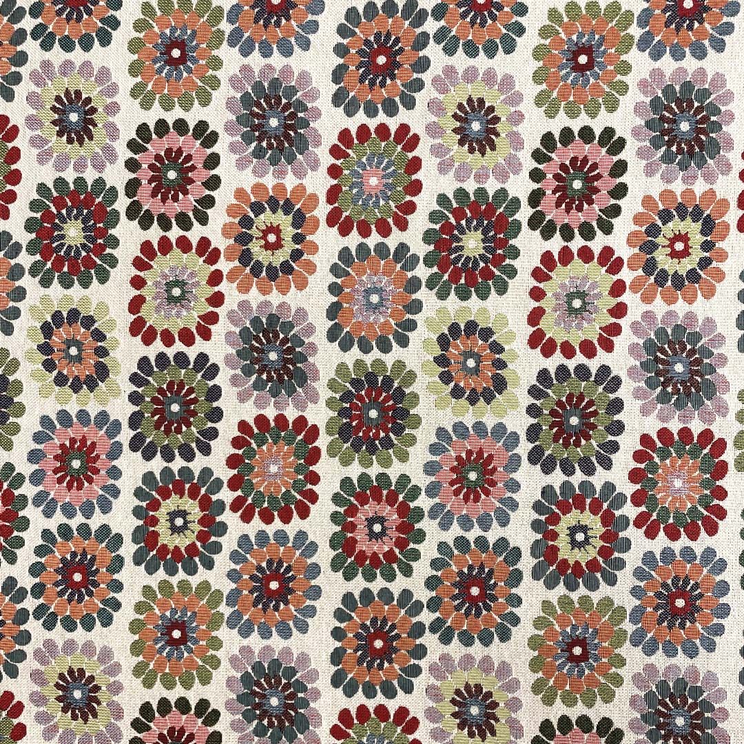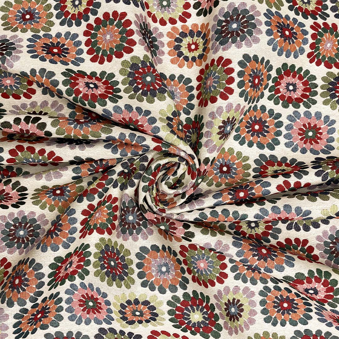 Tessuto per arredo Gobelin a fantasia dalla mano resistente e sostenuta, si presta alla creazione di complementi d’arredo colorati e vivaci come: runner, cuscini, copri tavolo e rivestimenti di divani e poltrone, inoltre è particolarmente utilizzato per realizzare borse e oggettistica.