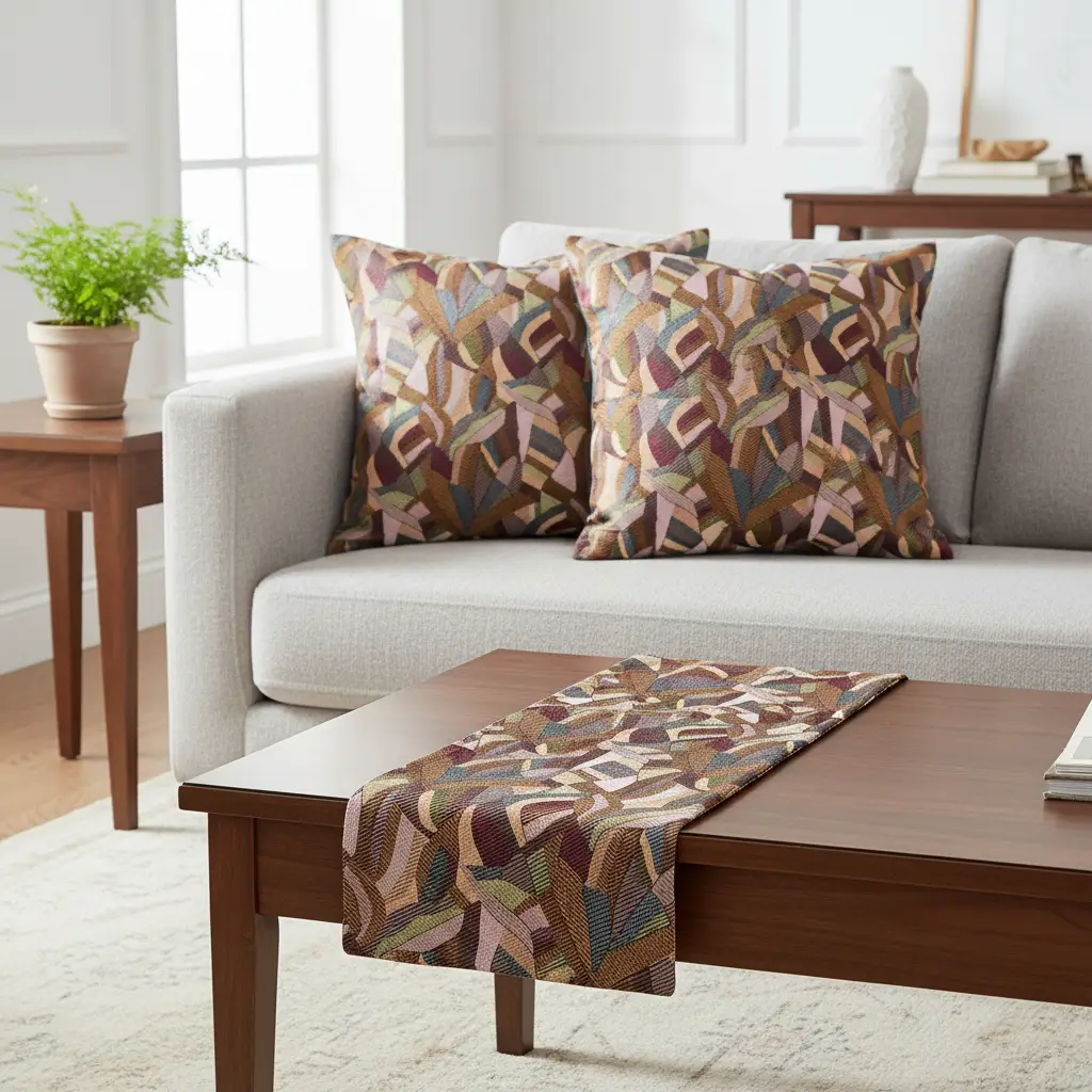 Tessuto per arredo Gobelin a fantasia motivo astratto rosa – vinaccio – arancio scuro