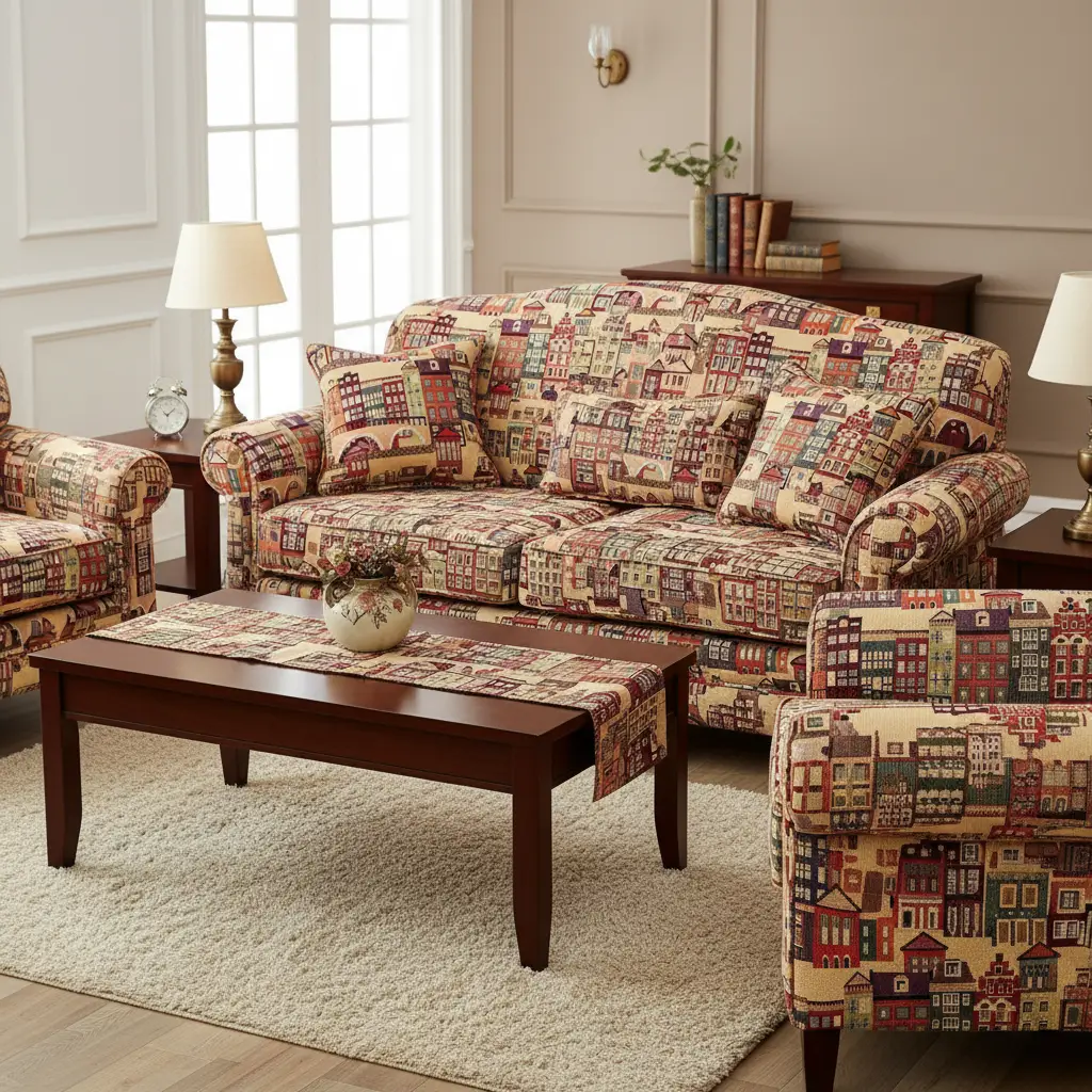 Tessuto per arredo Gobelin a fantasia dalla mano resistente e sostenuta, si presta alla creazione di complementi d’arredo colorati e vivaci come: runner, cuscini, copri tavolo e rivestimenti di divani e poltrone, inoltre è particolarmente utilizzato per realizzare borse e oggettistica.