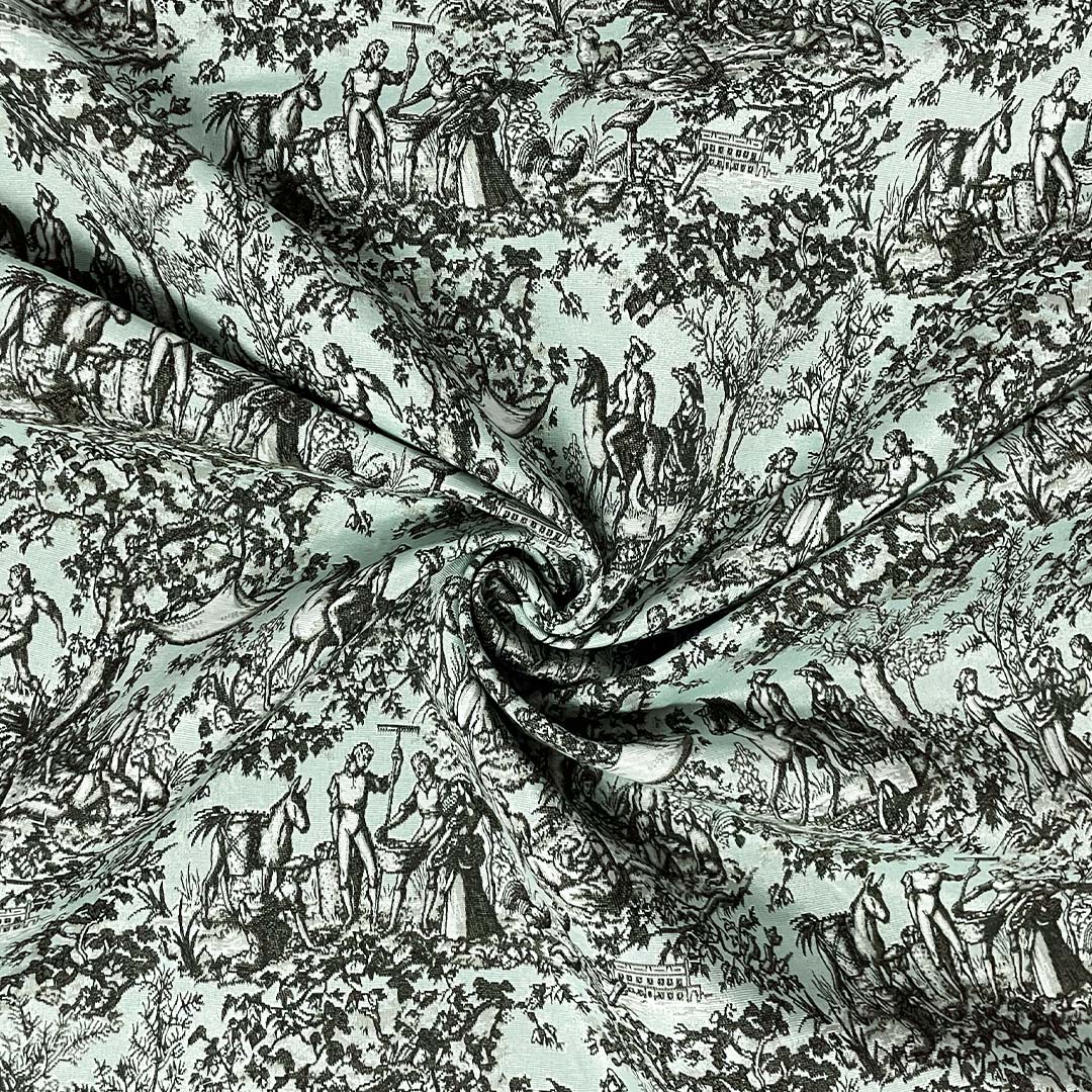 Tessuto per arredo Gobelin a fantasia motivo astratto verde acqua – tortora