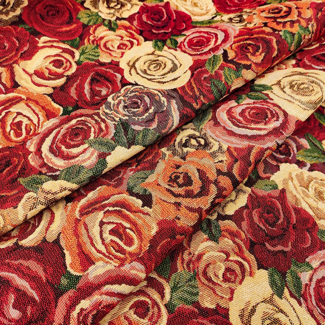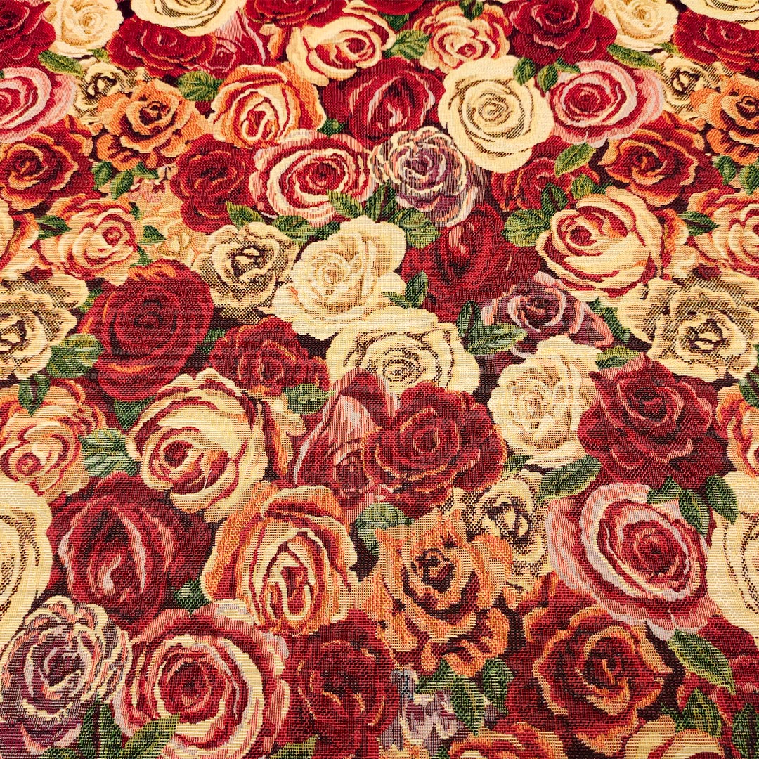 Tessuto per arredo Gobelin a fantasia motivo floreale rosso – beige – verde – bordeaux