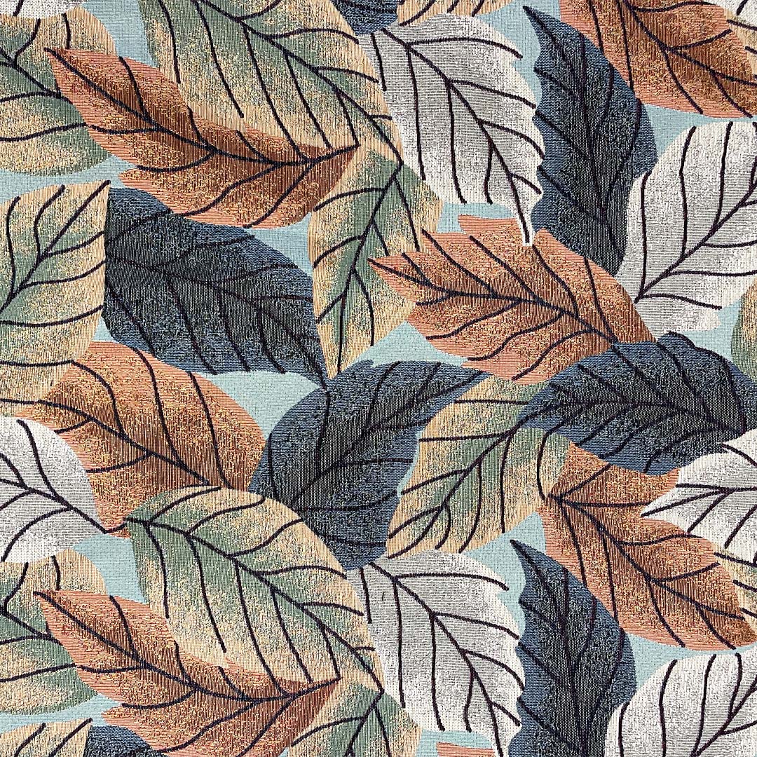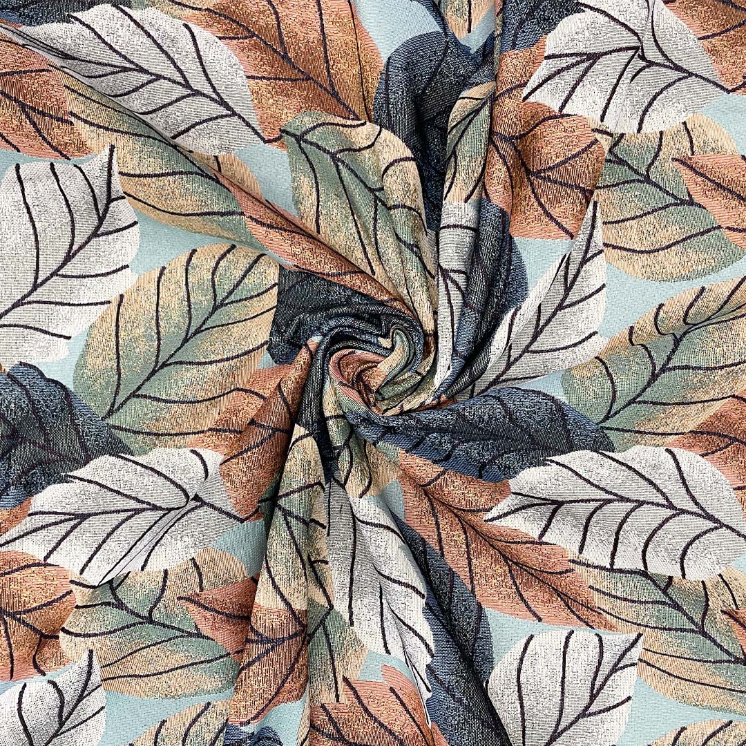 Tessuto per arredo Gobelin a fantasia motivo floreale verde acqua – tortora – arancio
